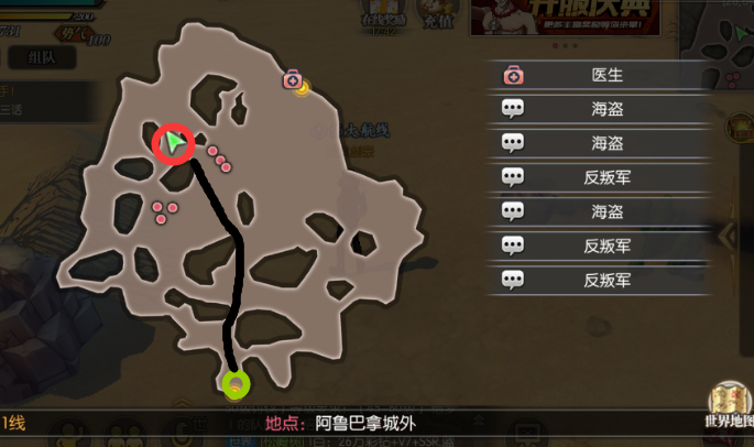 11点老沙 阿鲁巴拿城外boss刷新点 红**oss 绿色出生点 黑色路径