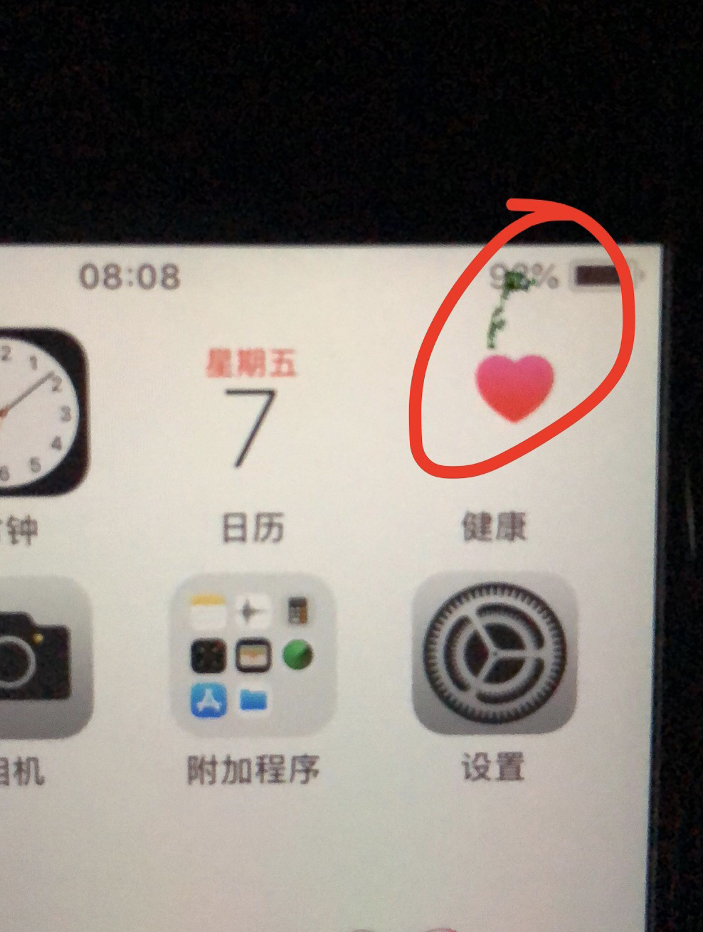 我的也是由几点丝线慢慢扩大,再然后自己消失!最大的时候电池图标都快遮完了,现在还有电量百分比与电池中间有一小块。