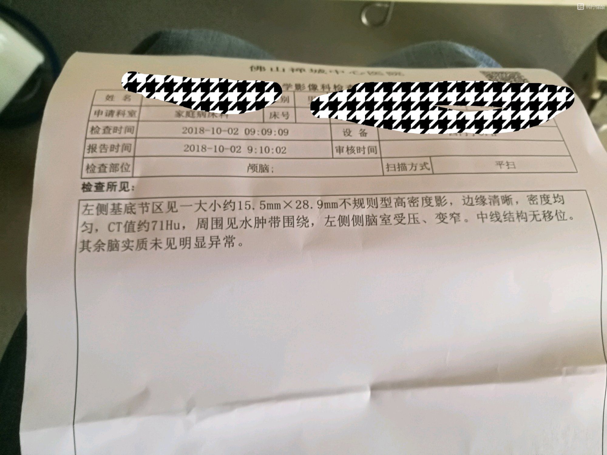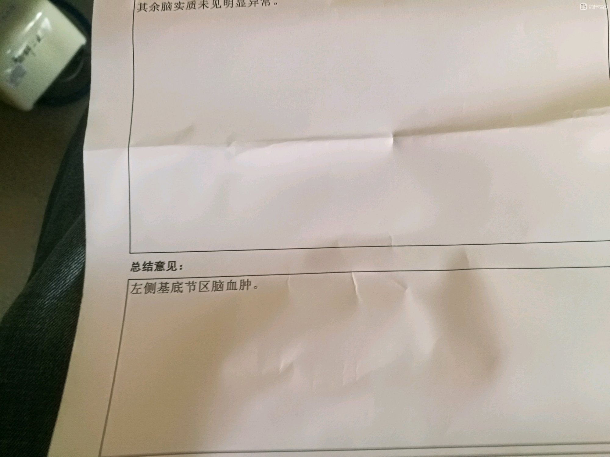 也许只系脑部微细血管爆裂,瞬间吸收唔切,唔使自己吓自己,保持心境稳定,只要病情稳定,脑内微山血块会自己吸收。