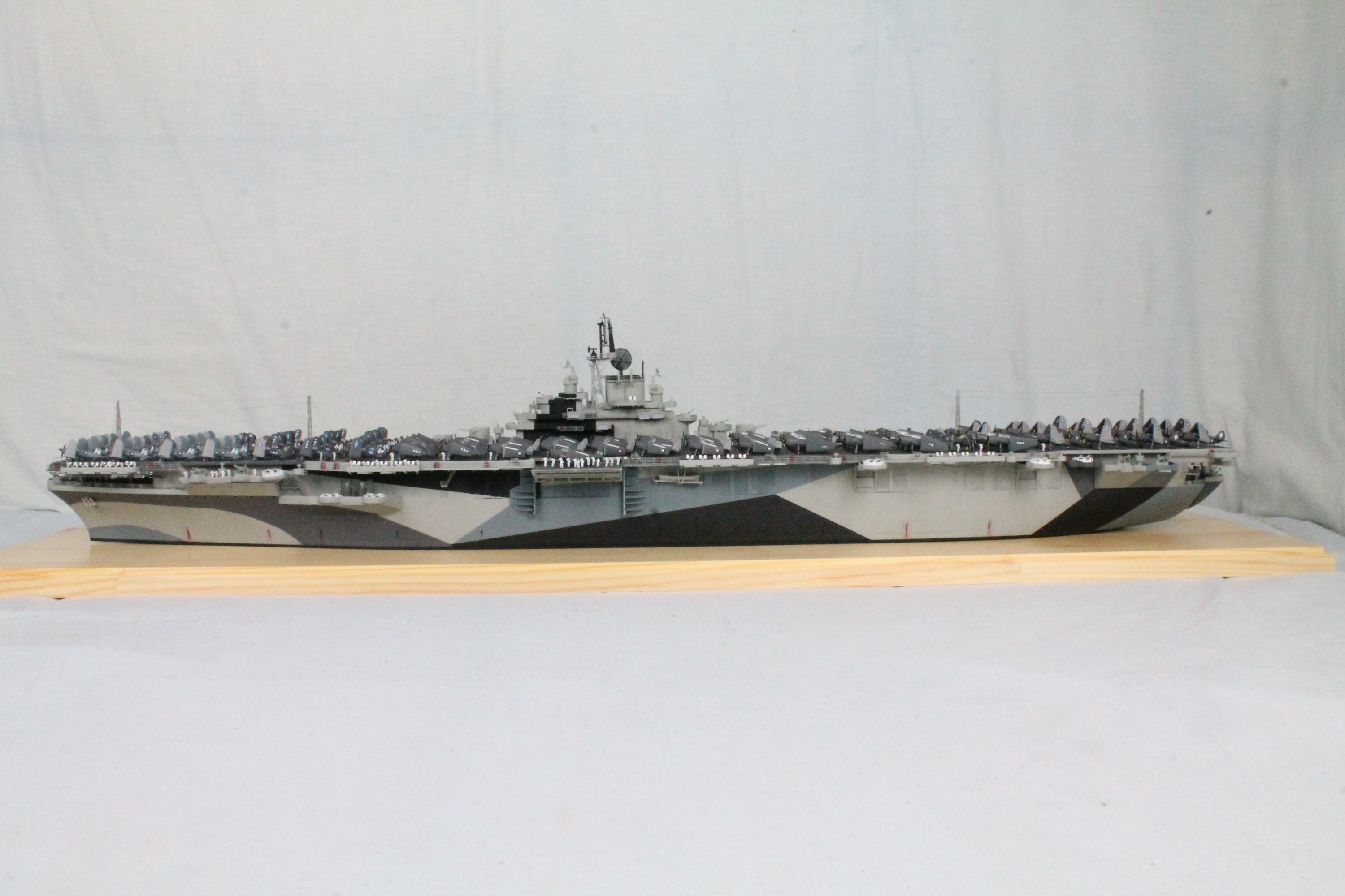 由于是1944年服役的时候,此时伦道夫号还再MS32-17a1迷彩时期,并未正式参战,所以船体右侧并未增加那基座博福斯防空炮,等到增加火炮的时候那已经是1945年参战的时候了,而且船体又回到那种单一涂装颜色。号手这个套件已经不是组合度差不差的问题了,很多地方已经是错位的不要不要的,比如第一段飞行甲板需要将下面的所有卡槽全部抹平才能和船体定位!组合度的话,这么说西西利当年那个1比400企业号也能灭这个套件几个胡同,各种打磨补土伺候大力粘贴,手抽筋好几次了!个人认为三大锻炼手指力量的活,小时候狂抄作业,开卡丁车,还有这个打磨小号手套件(滑稽的笑)。
