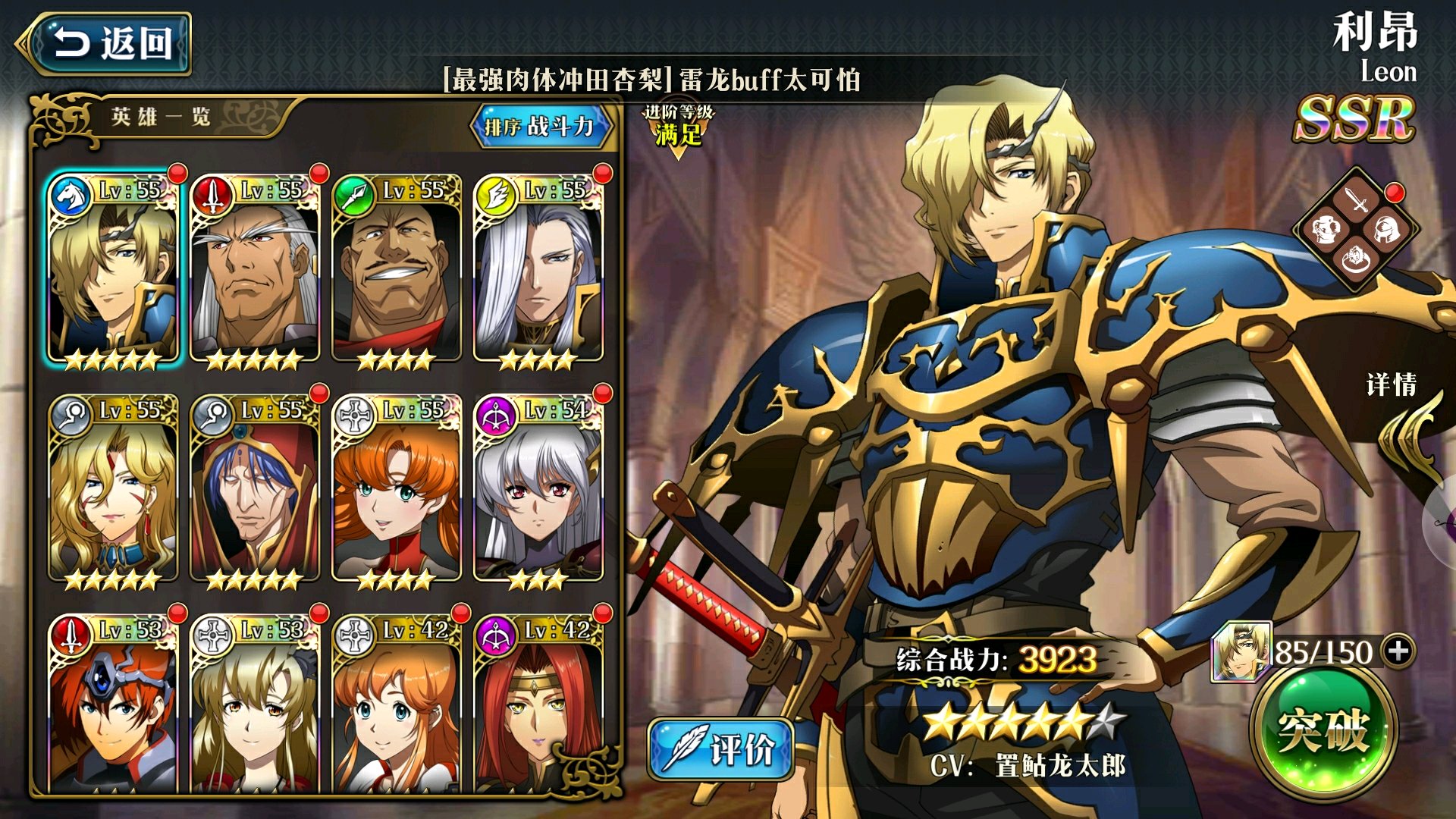 本人现在羁绊分配是优先利昂和奶骑升星。
