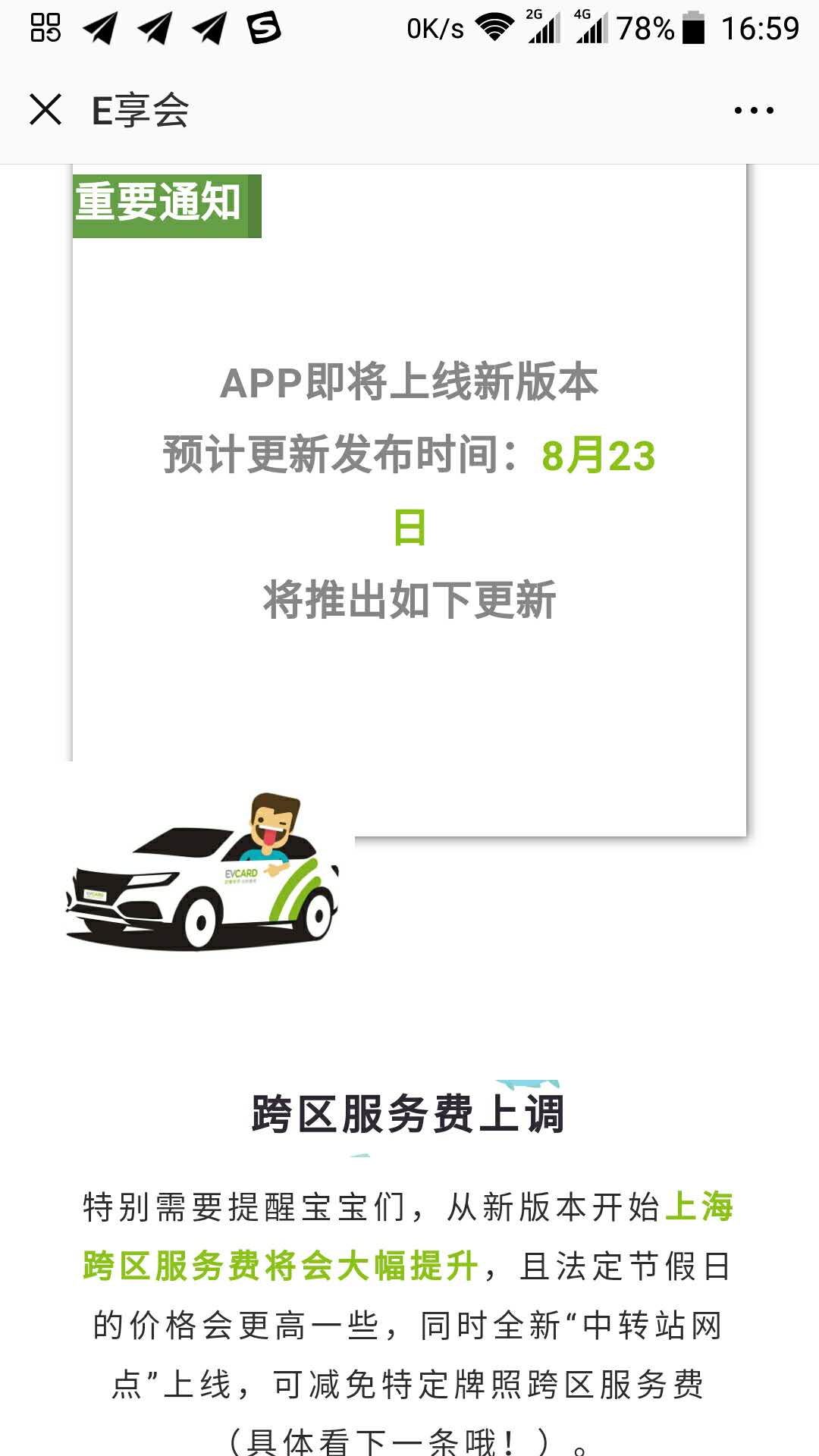 下午14:28分收到EVCad客服来电,对方说这是28号软件更新后的调整,在取车界面有查看跨区服务费费的选项,是我自己没有详细阅读, 我再次向客服说明9-22号我咨询过没有跨区费,这是28号APP更新后的变更, APP没有提醒公告,提醒,这是误导,坑害用户,我拒绝付款