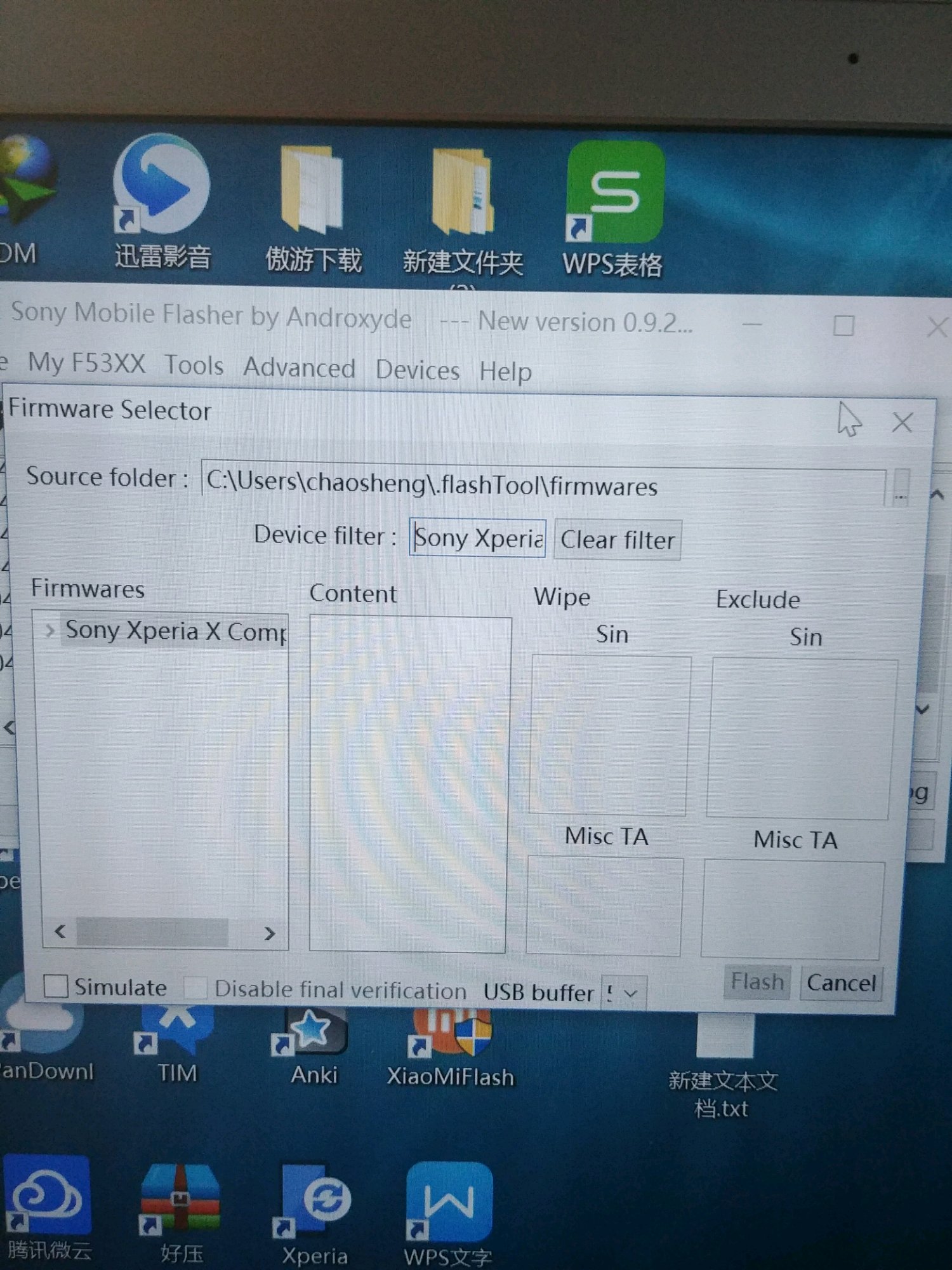 但是找了几个版本(包括最新的)Flashtool,还有日版的6.0 ftf固件包,遇到的问题是他设备列表里没有XC的型号。我用F53XX刷又提示我没有loader.sin。