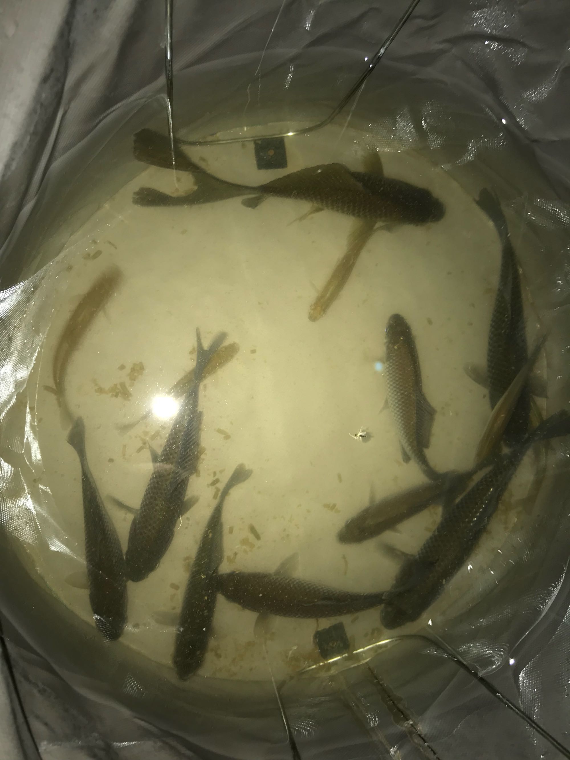 今天搞了一下午就这点儿,不过有条金鱼跟鲫鱼滴杂交品种!野生的确实不好搞,小鱼好烦