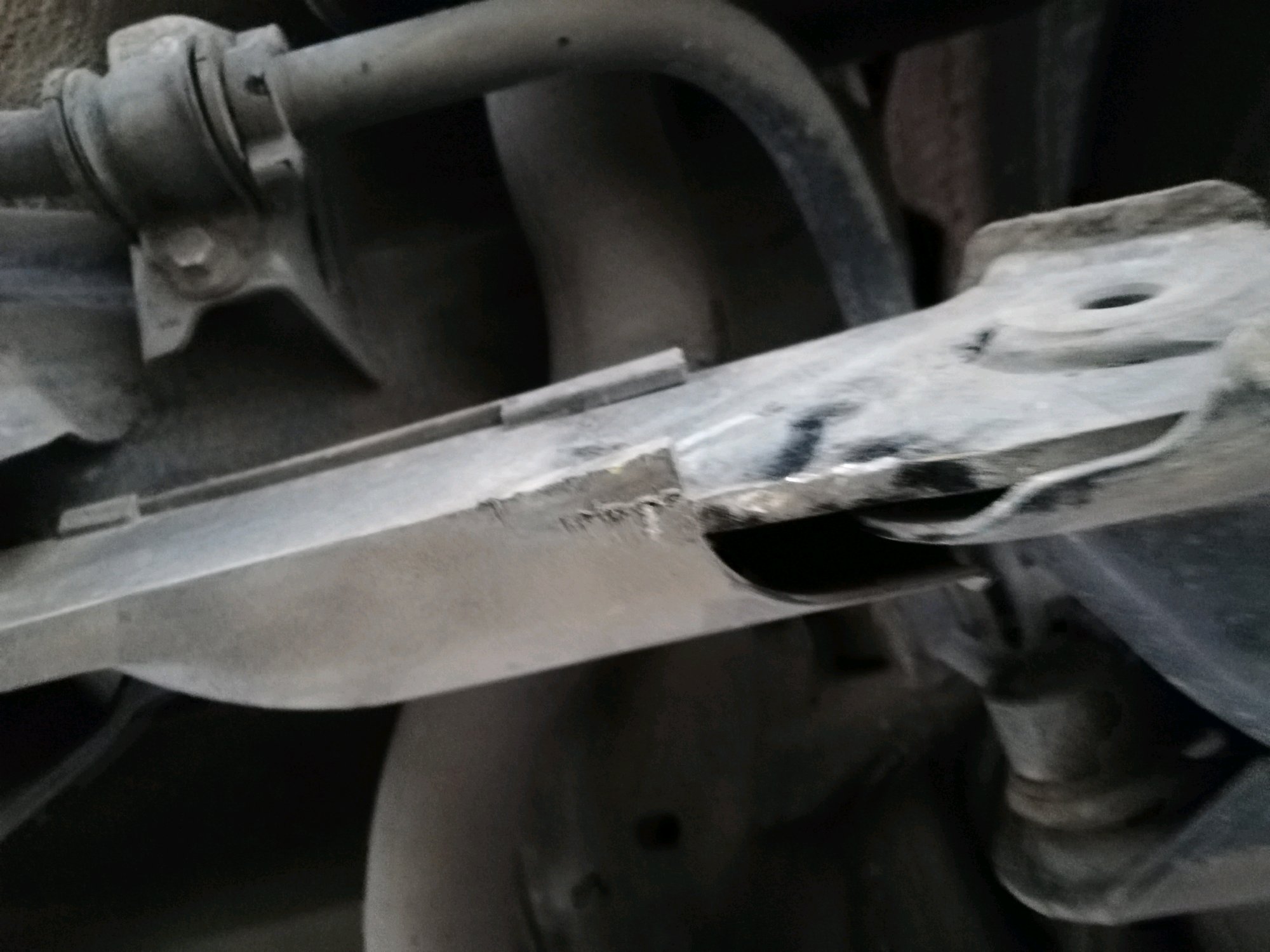 昨天下路沿的时候,后悬挂臂让磕了一下,目测没有变形,专业人士给看一下,有没有事?需不需要去修车那检查一下?