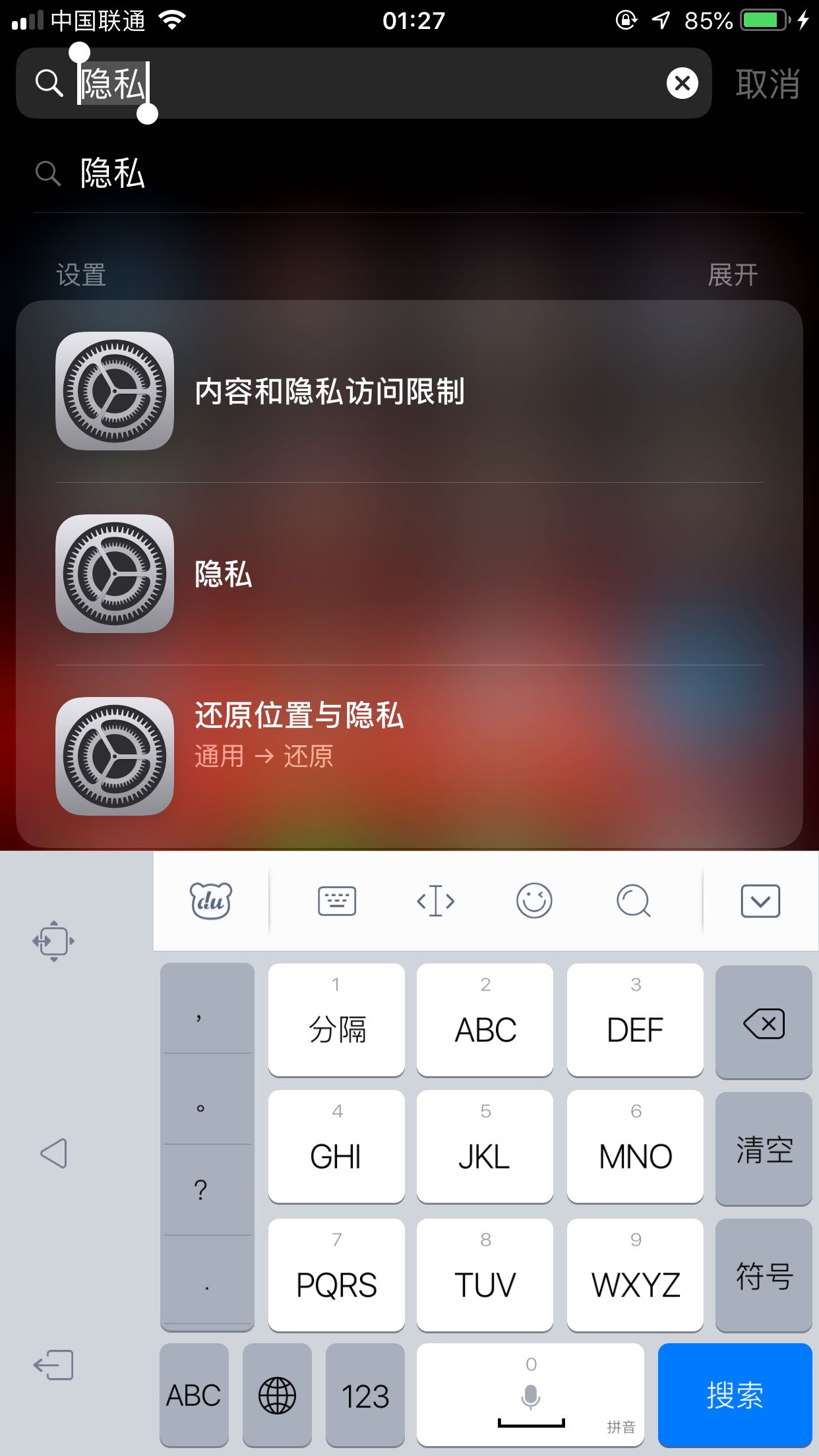 求问为啥我不能搜索隐私,只能搜索设置??