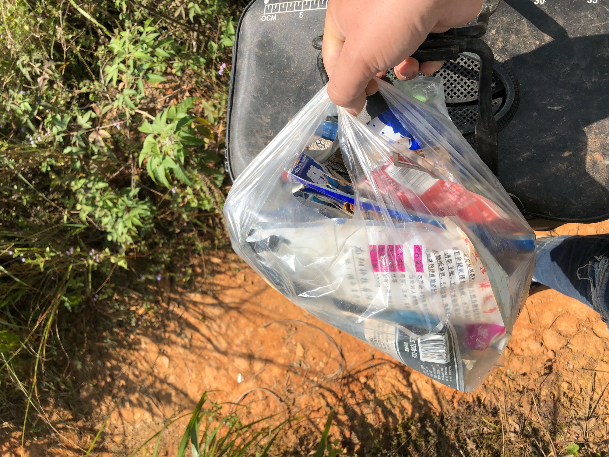 摸了个螃蟹,捡了一堆饵料袋,不算空