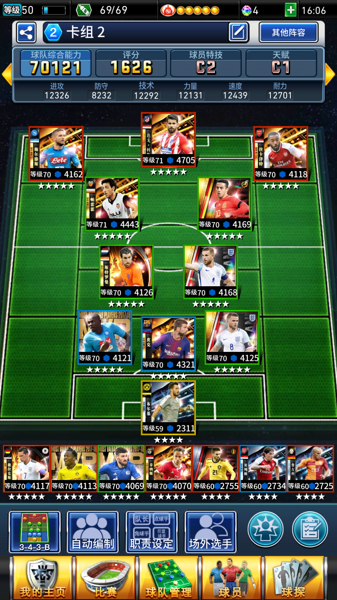 之后的都是签到。攒到足够多的升级卡了就等五星球员