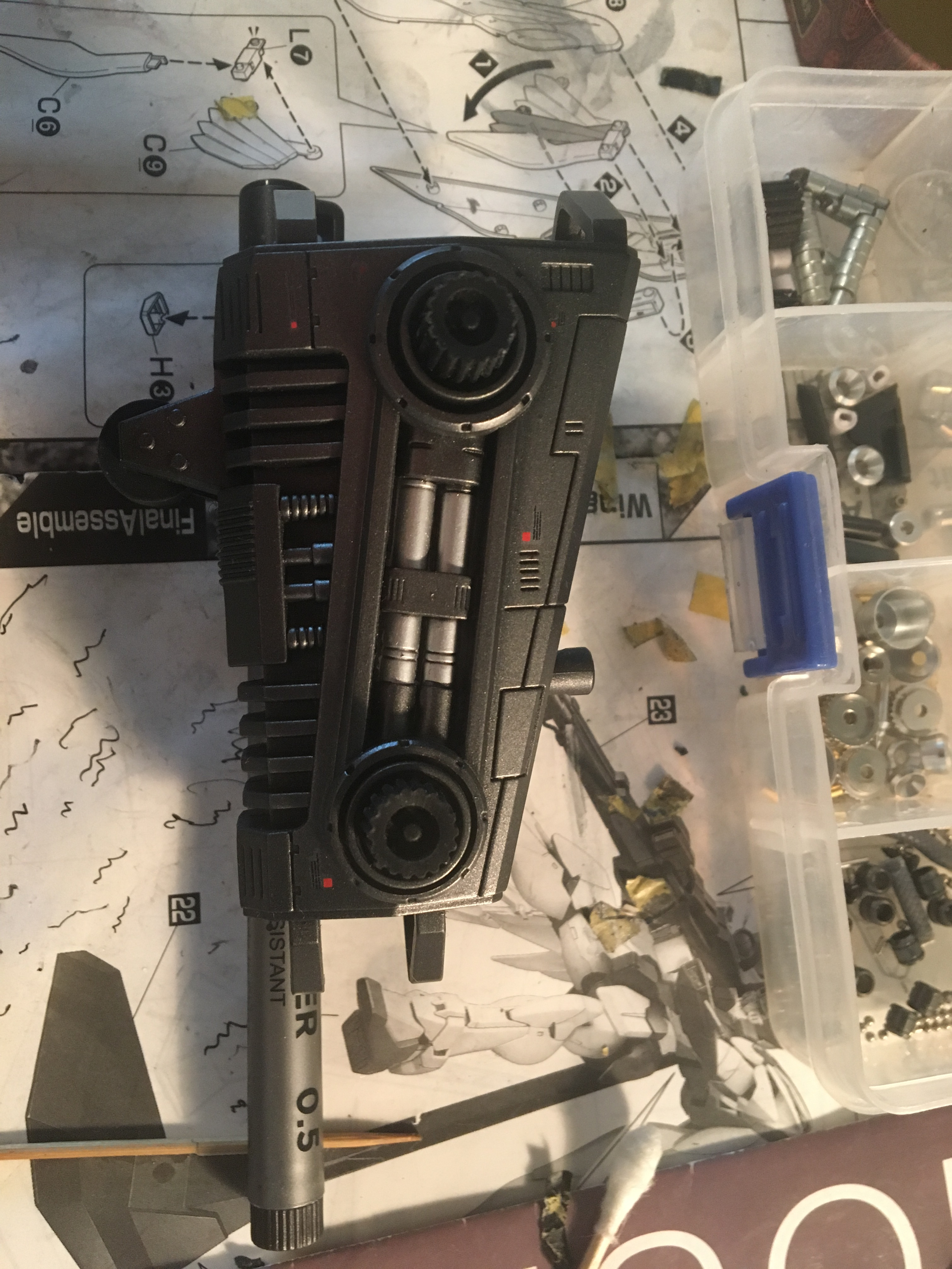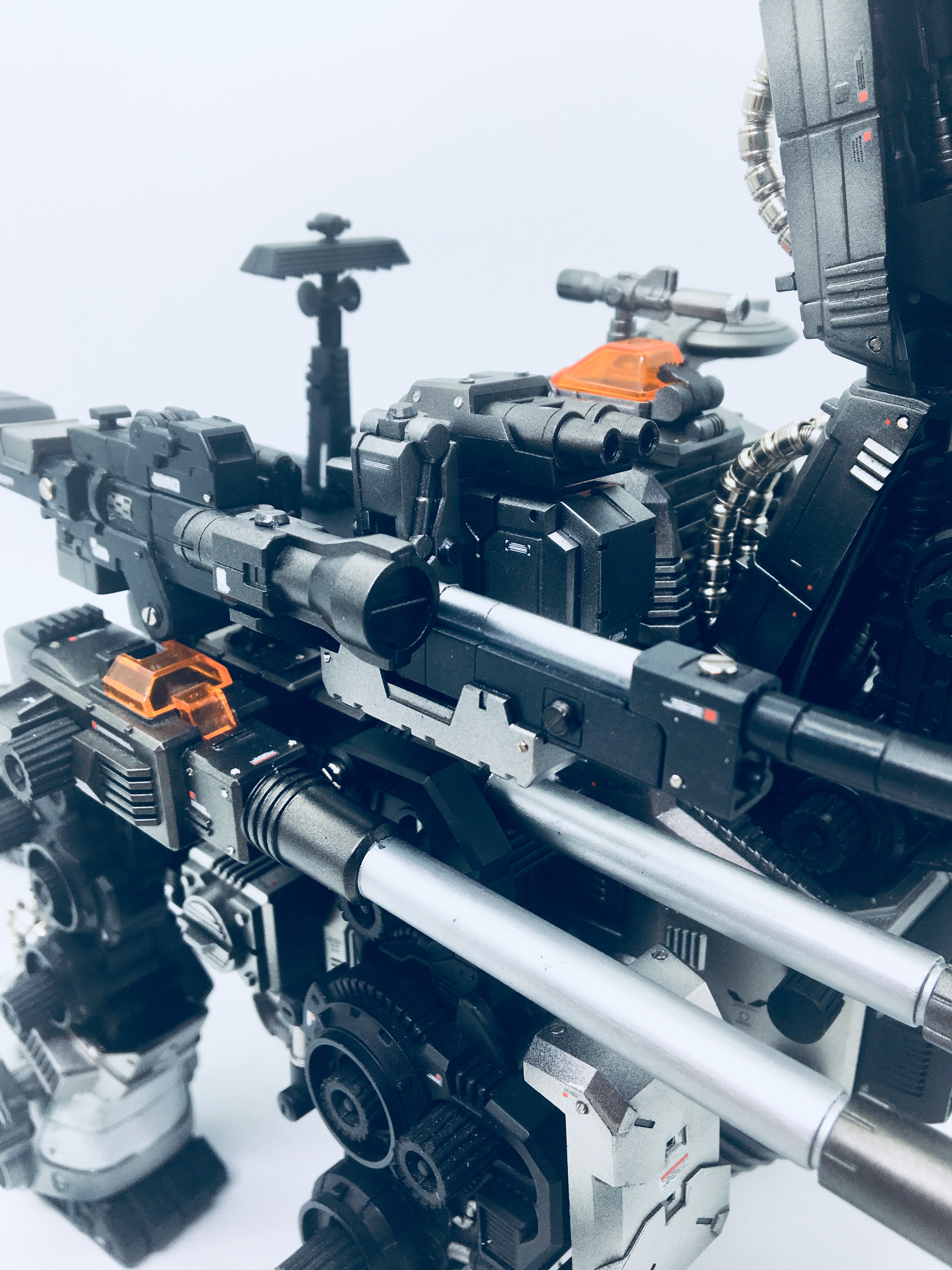 造型方面主要是在原本机体的基础上追加了一些武装,动画版的巨龙重力炮个人感觉实在太大,已经不美而显得笨重了,所以此次参考动画设定把重力炮做了小型化,正好用上寿屋的重狙,个人感觉非常的搭。