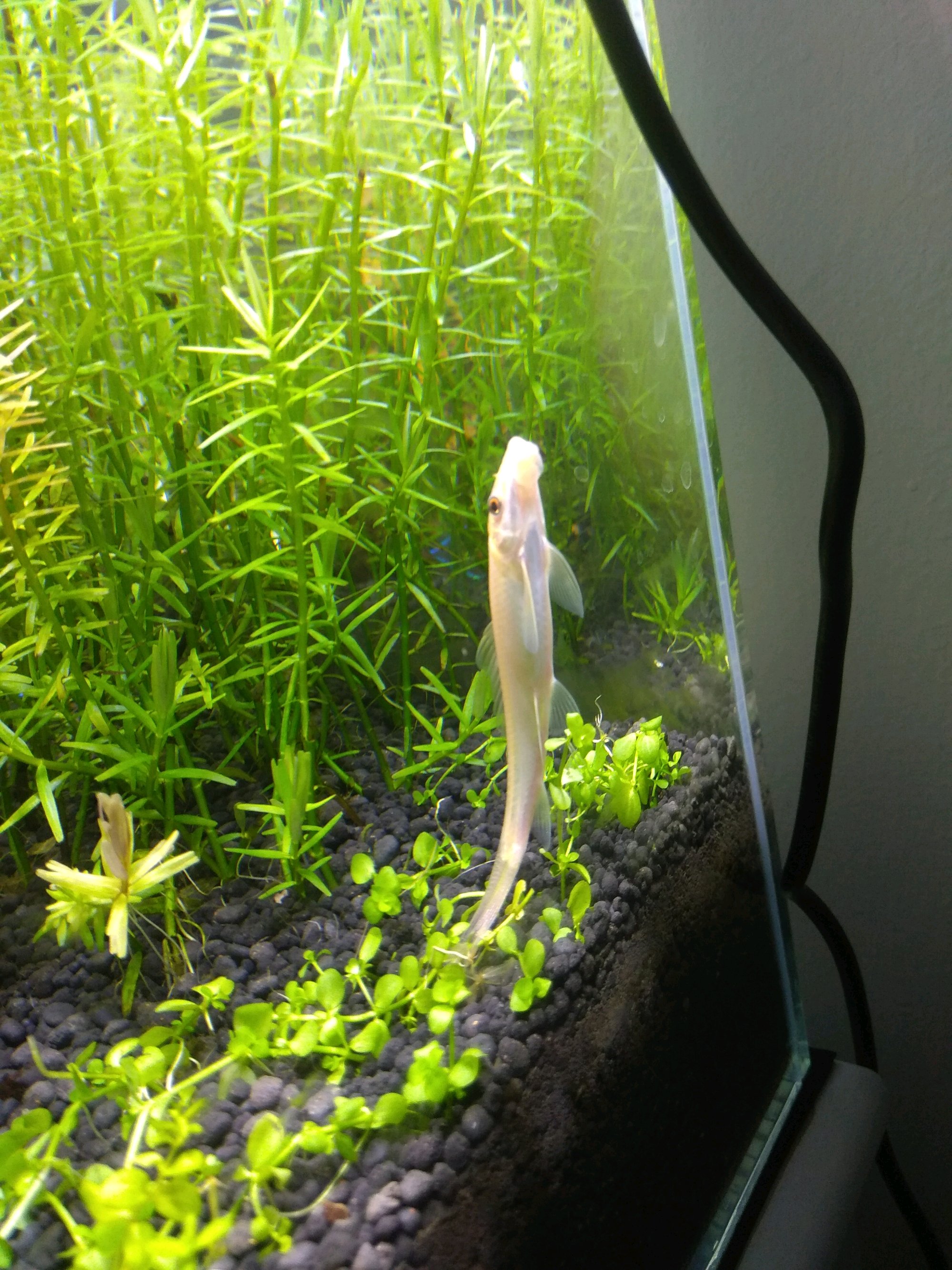 我养了几条不错的吃苔藓我现在都不怕缸壁的青苔了石头上的青苔都没有全给它们吃完了