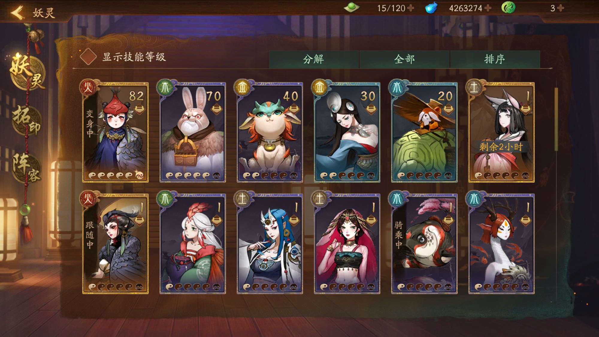 楼主如梦似幻就差不要土系和木系的条件.用什么妖灵呀
