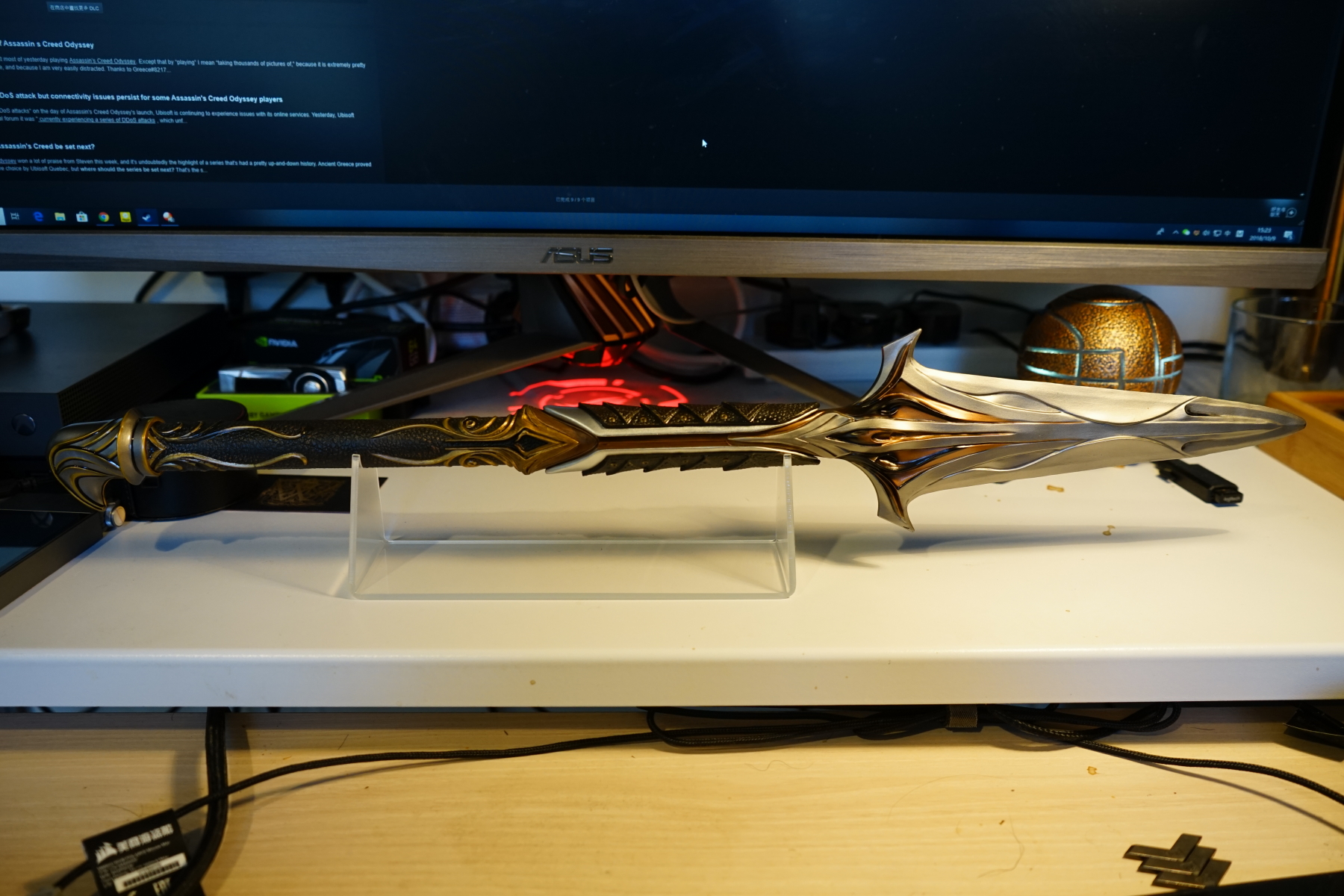 柄比刃重太多了,在支架上稳的一批。[阴险]