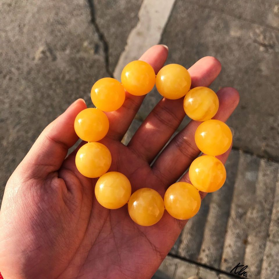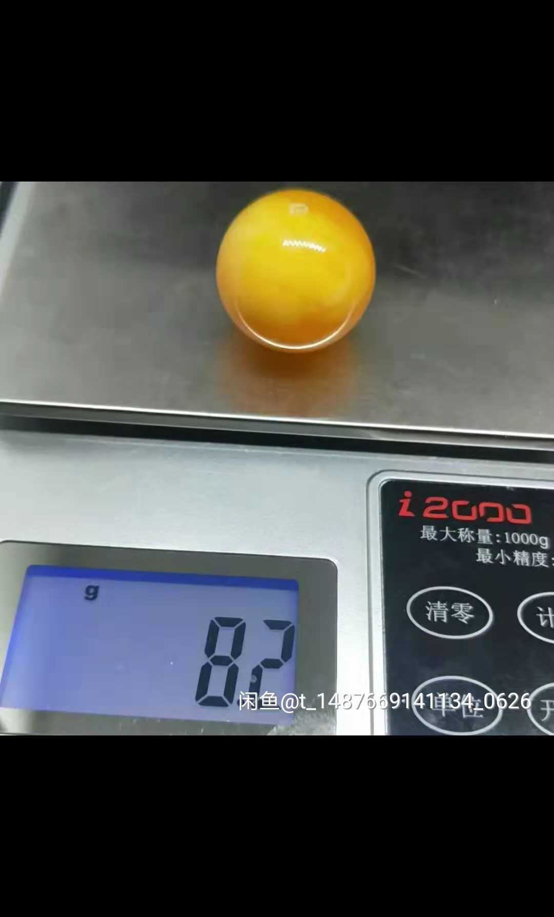 我自己设计了一个公式,利用公式重量=体积x密度来辨别塑料蜜蜡,公式为=4/3*3.1415*r^3*(1.03-1.08)以下图为例。圆,珠直径24,半径为12,根据公式得出,体积为7.238,乘以1.03-1.08,可以得出重量范围应该为7.455-7.817之间。可以得出,下面的这个不是蜜蜡,是塑料制品。