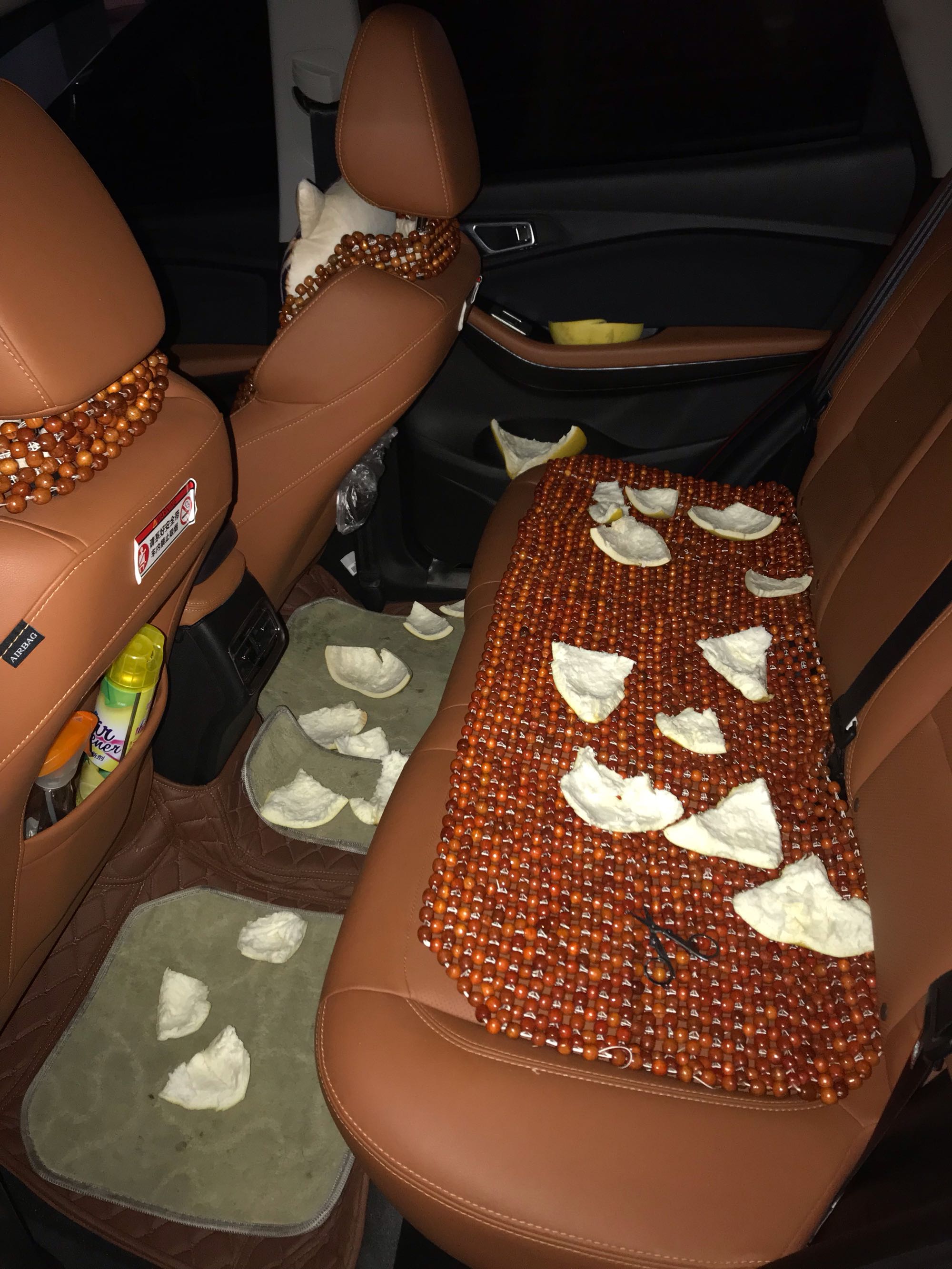 柚子皮除味效果真好!放车里2天味道就没了!并且以前的同事上车就说味道好清新