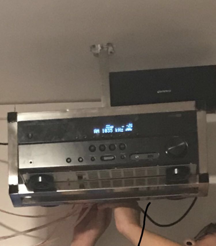 我去,你把功放拿下来,把自己吊上去看看。只要你打的顶板螺钉没问题——〉没有扩孔松动。把你吊起来也没问题。不锈钢啊,兄弟……。