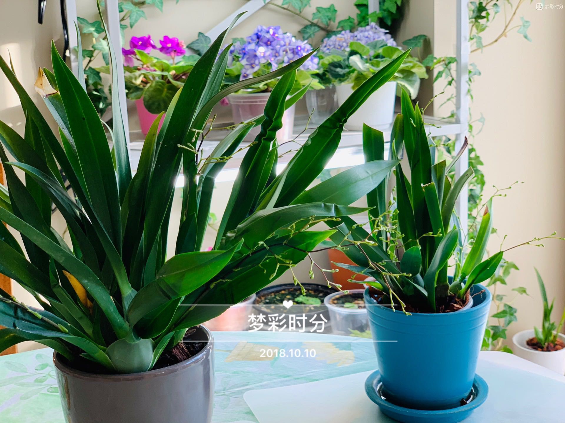 去年开始养的,今年是复花。小的两棵是去年开完花后分株的,没想到今年也抽了好几支花箭复花。