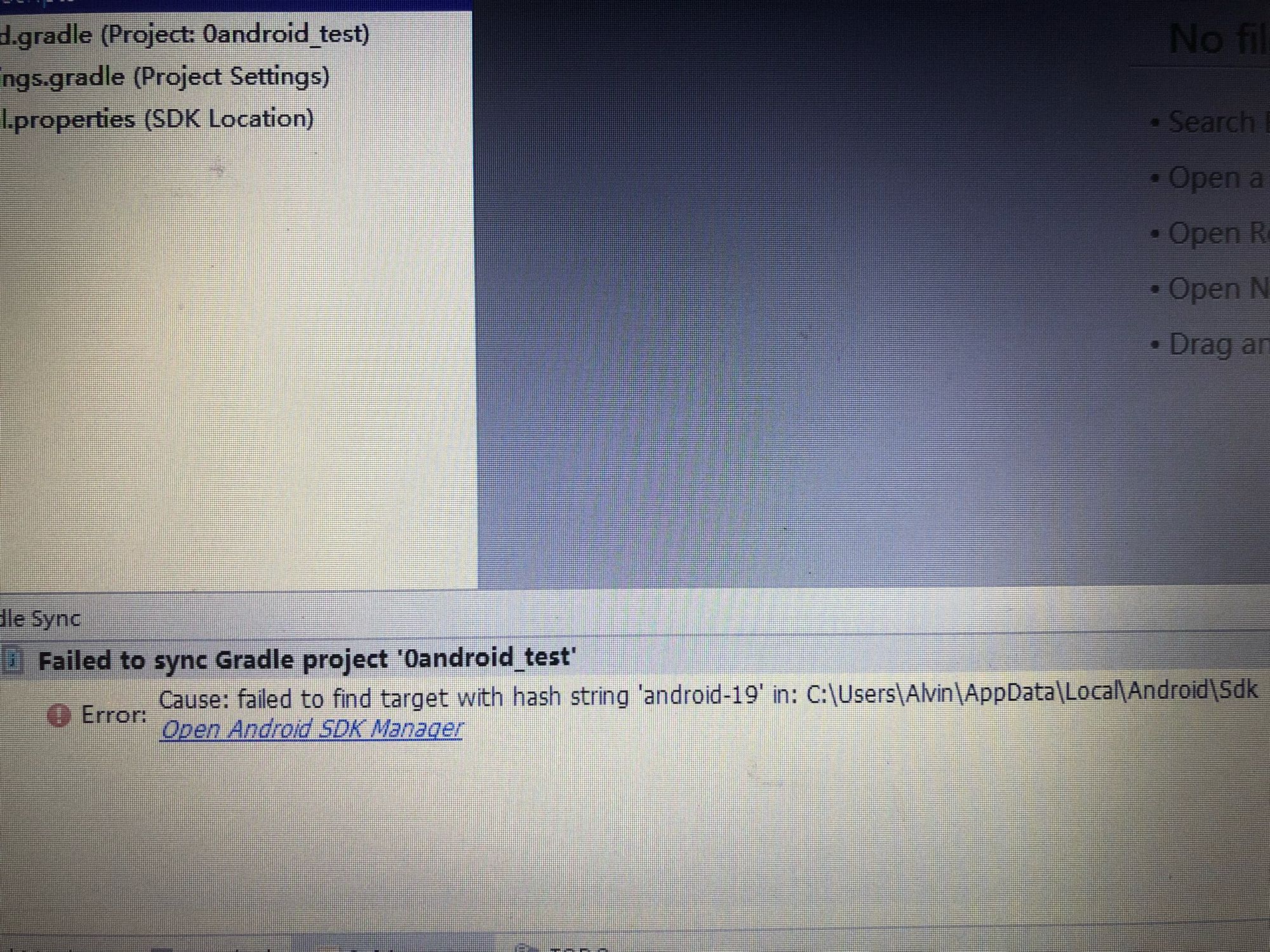 问题:第一次打开Android Studio时环境变量没配置好,不能用,于是删了重新安装,可是再也不出现这个页面了,不知道怎么办了(如图二)。求各路大神帮帮忙。而且运行给的测试文件也有问题。(如图三)