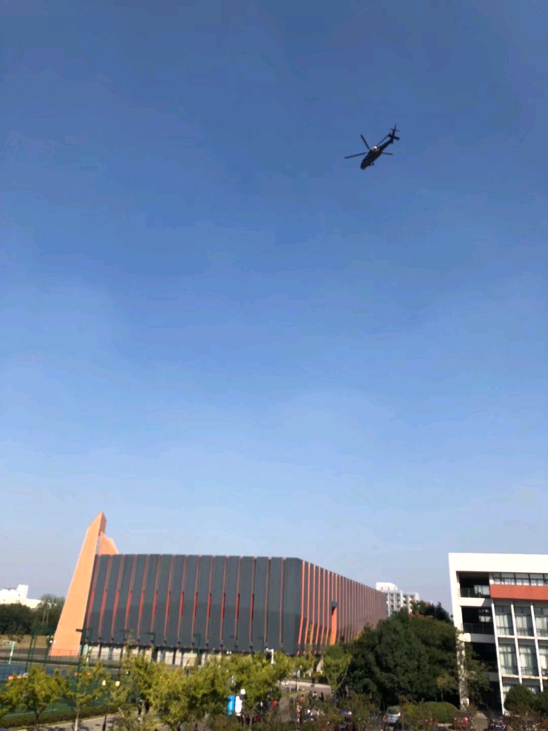 刚才一架直升机飞过学校上面,灰黑涂装,红色徽标,貌似黑鹰外形。有没有看清楚的?这是直-20?