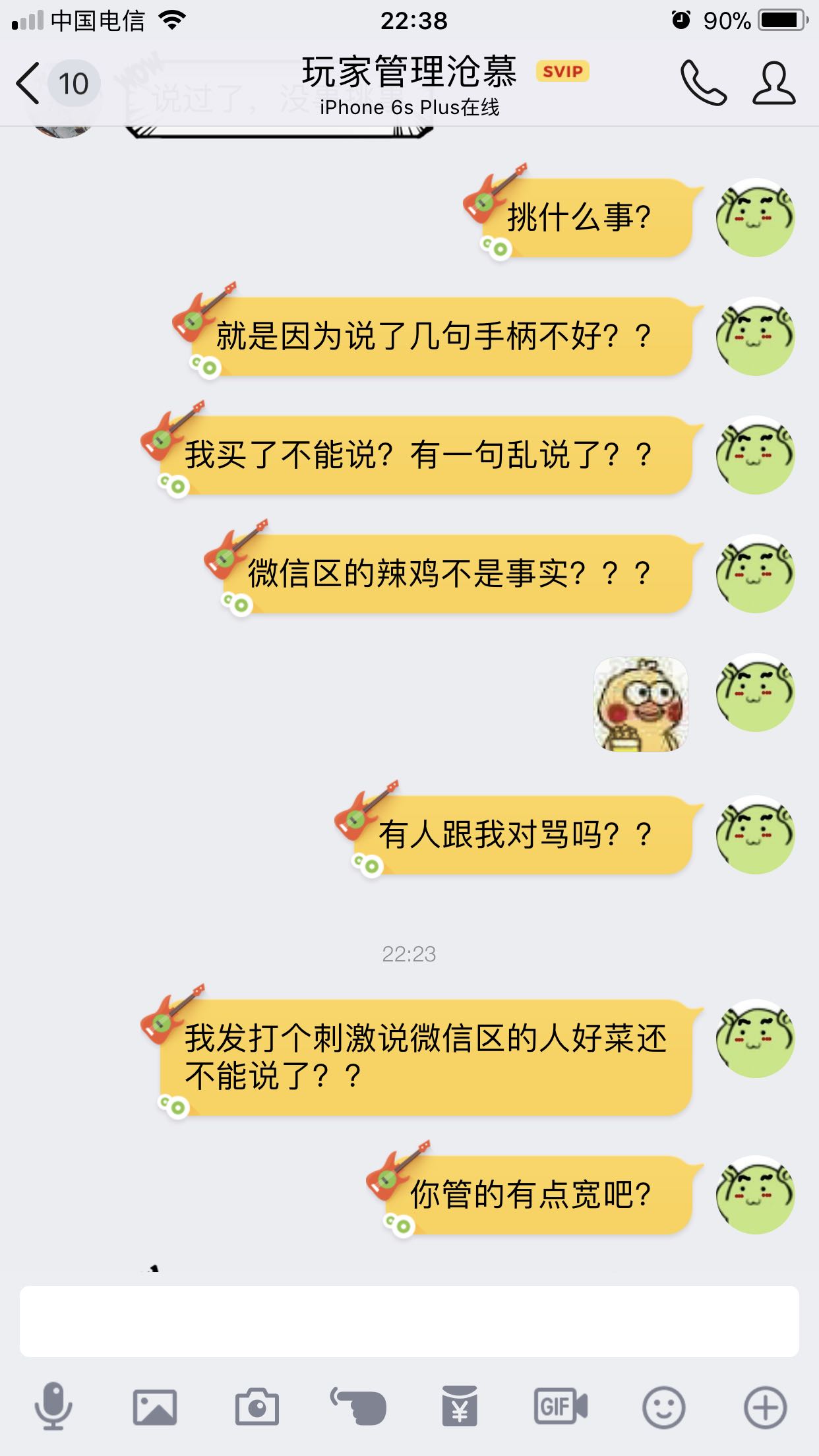 搞笑,我突然发一句微信区的好菜给我禁言三天,现在把我全踢了,**,就因为买了一个黄蜂说了几句黄蜂不好之后就被盯上了,笑死,用了一年飞智现在也算是尽头