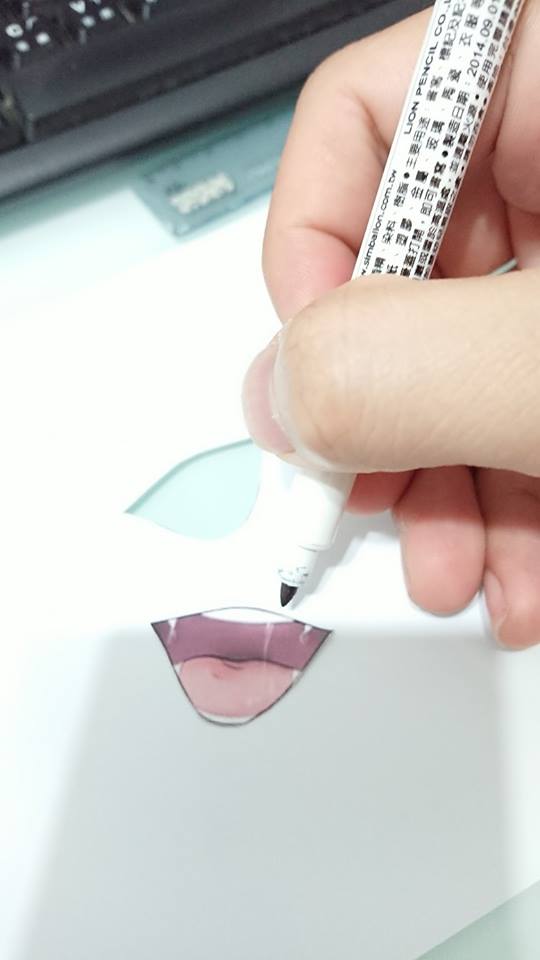 拿著做好的眼眶,在厚紙硬紙板上描一次,這個是為了做出一片永久版型,方便以後可以重複刻復這個眼眶