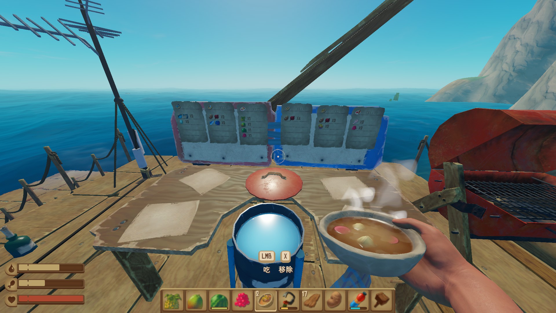 6椰子鸡:鸟腿x2 椰子x1 蘑菇x1