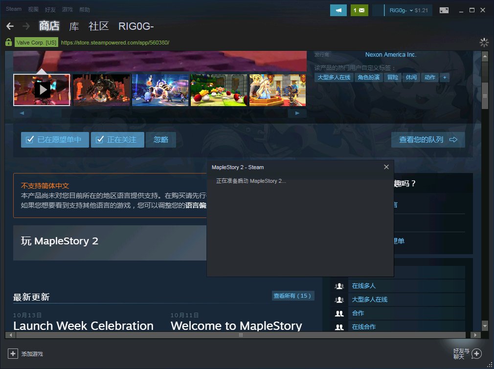 进入岛2页面点开始游戏 并没有跳出下载游戏的界面(选择下载路径等等)而是跳出“正在准备启动maplestory2”的提示框(图2) 随后提示框消失 自动刷新并重新进入岛2页面# (图3)