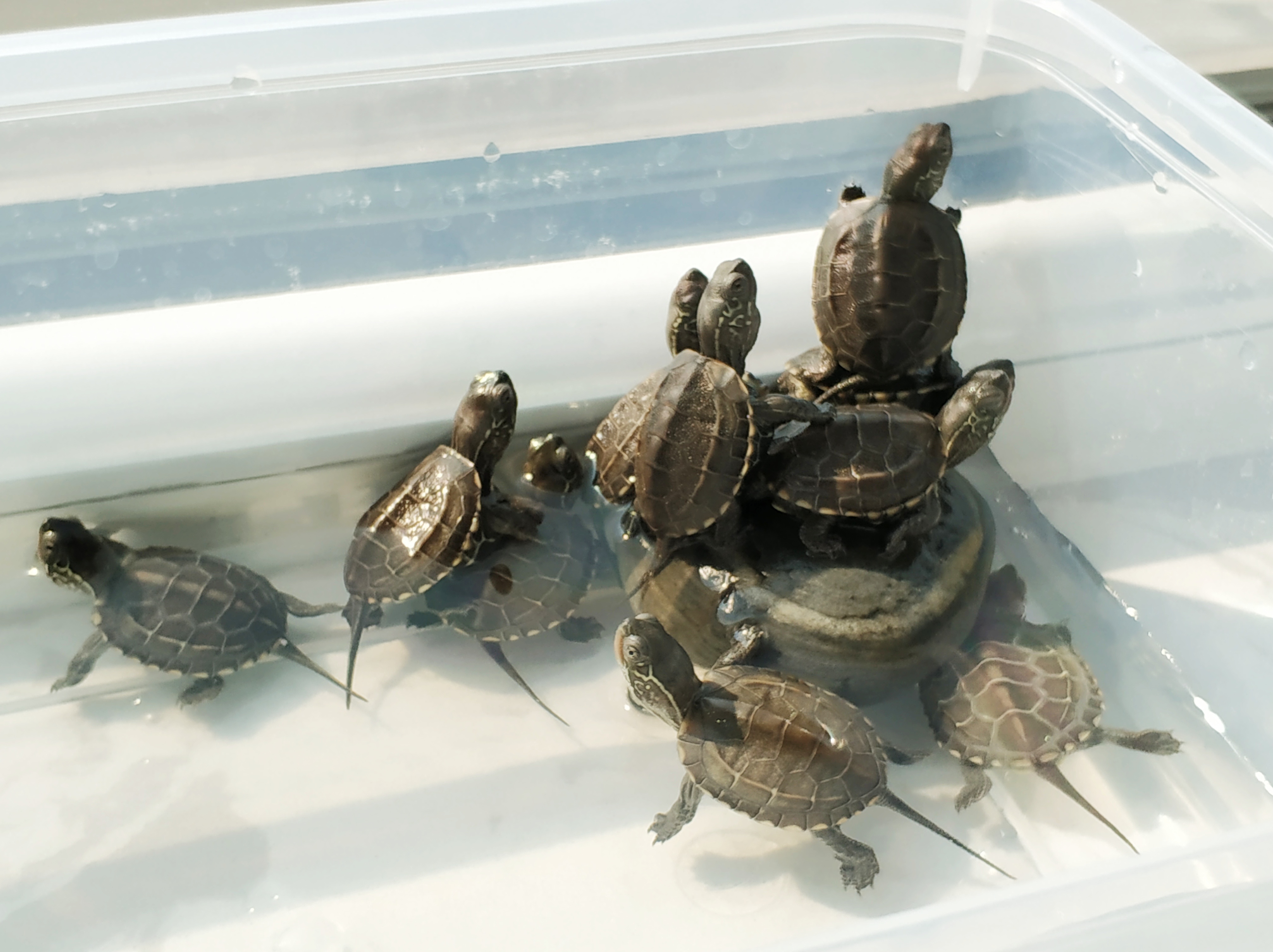现在背甲线已经微微发黄了,在大点,希望更明显