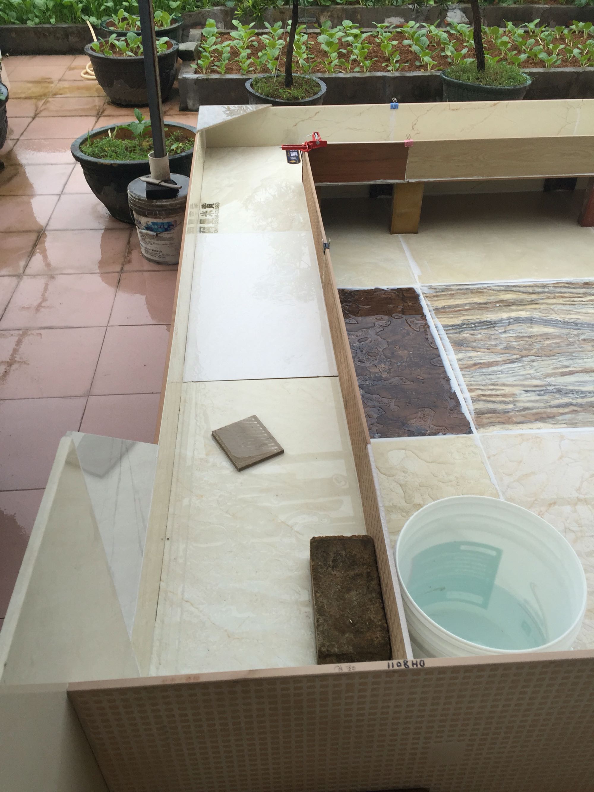 昨晚趁没下雨,赶工。做沙池和绿化槽的底部。
