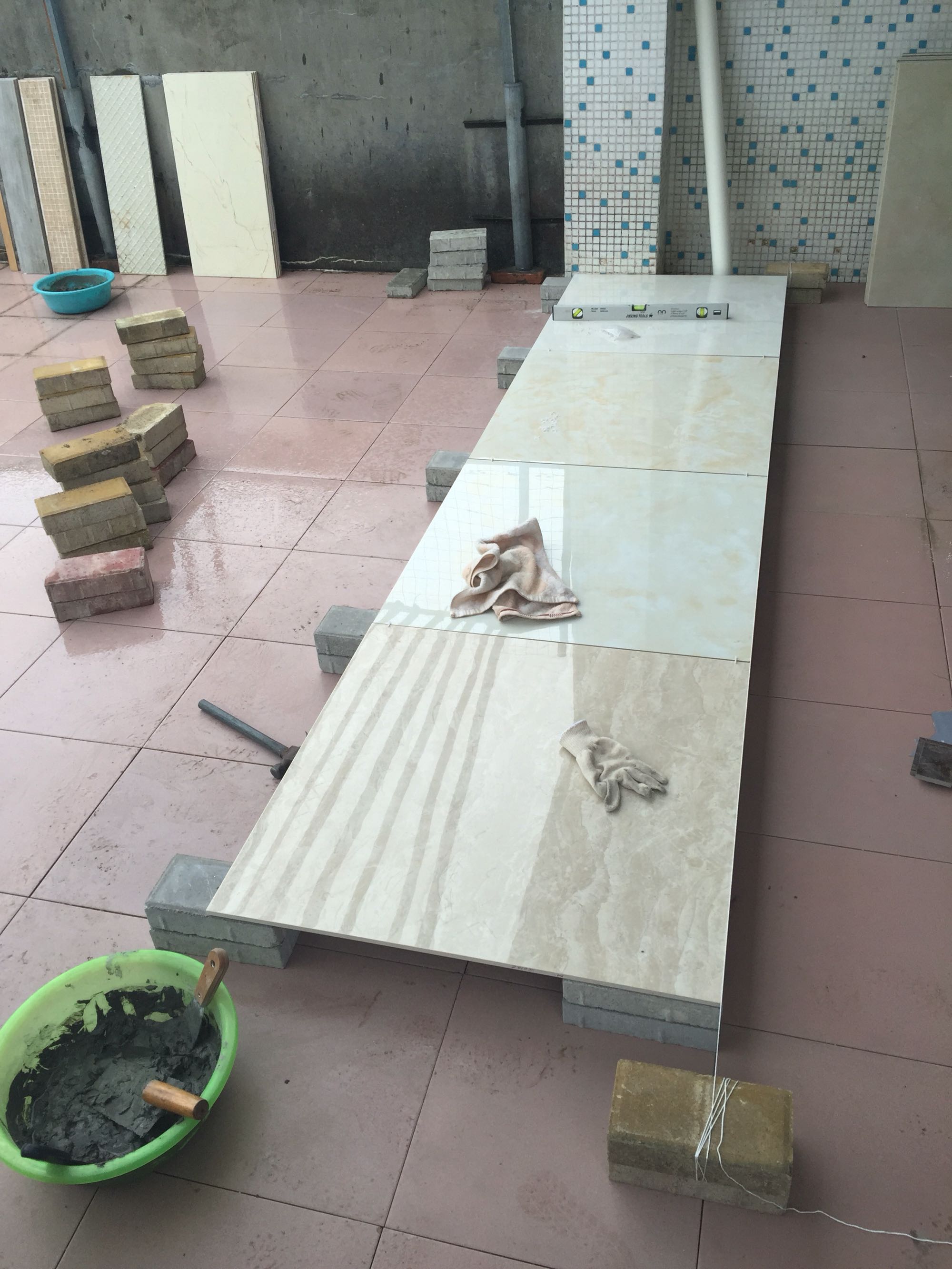 接着就是最难的底部找平了,打平水,水泥要用上