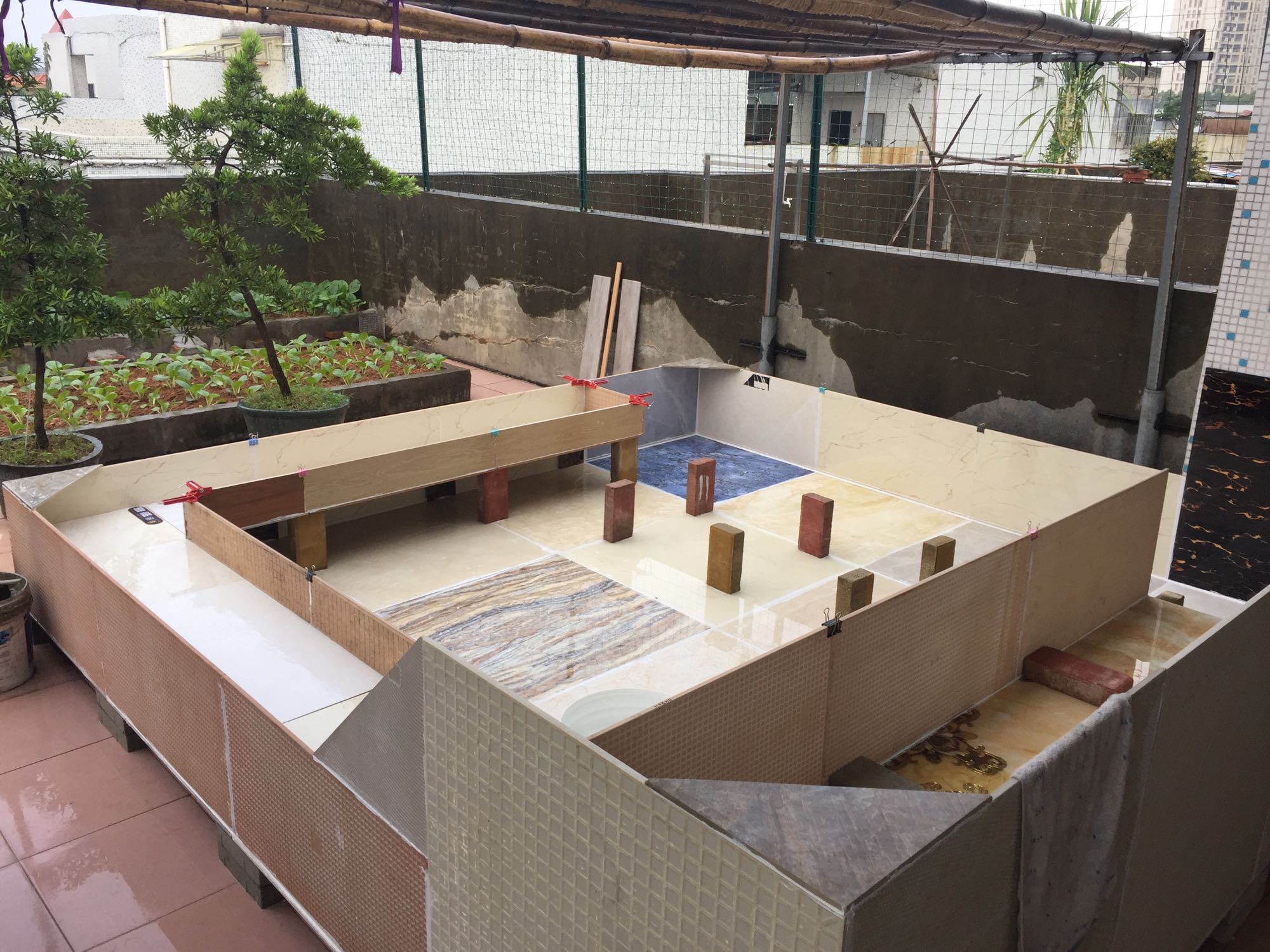 楼顶的第三个龟池开工