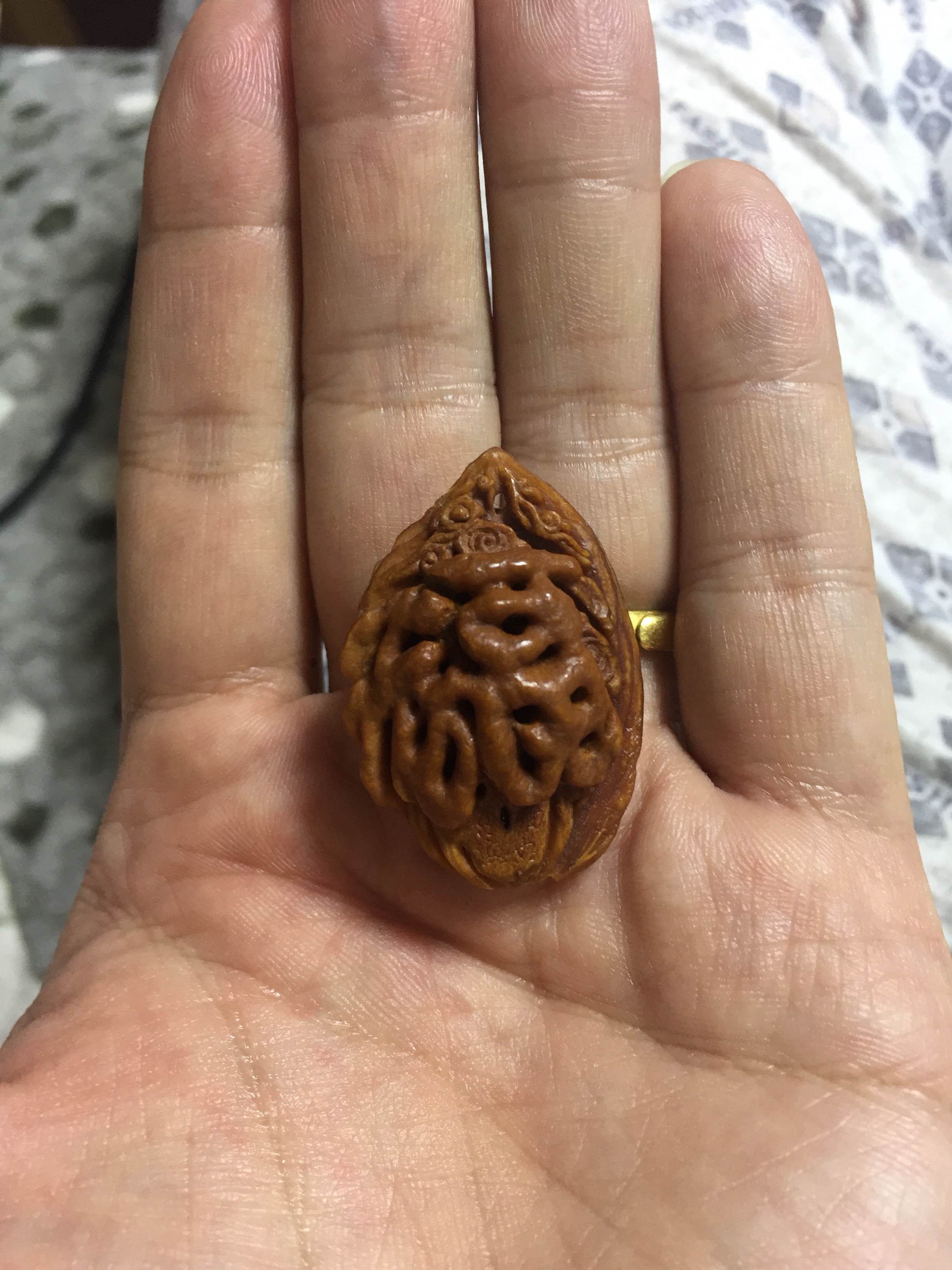 ,艺海老师曾说,一颗桃核同时找的出福和寿两个字也很不容易,这是我永远值得纪念与珍藏的无价之宝