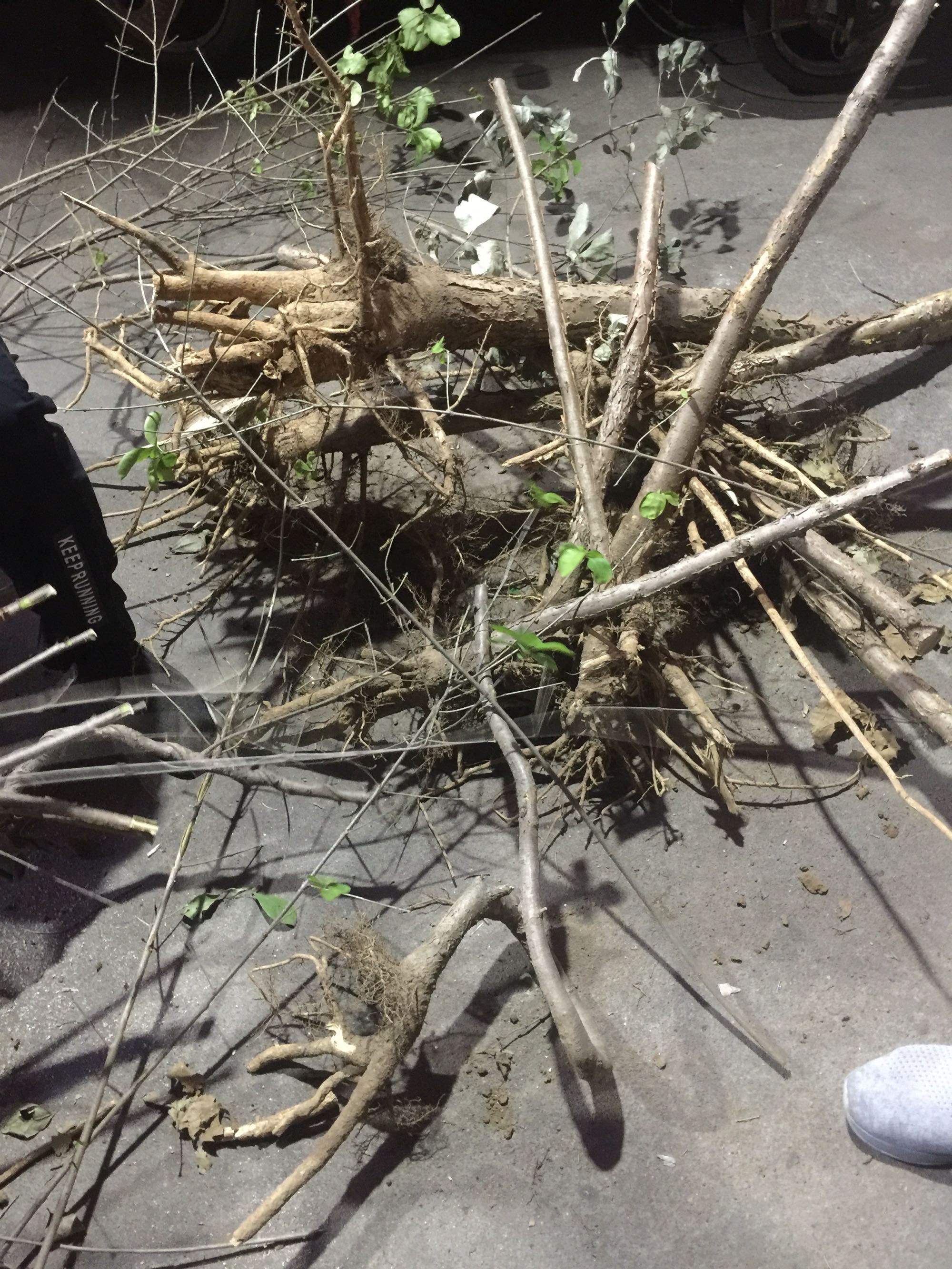 昨天深夜,闲来无事,遛街,恰巧遇到两个小哥在锯树根。