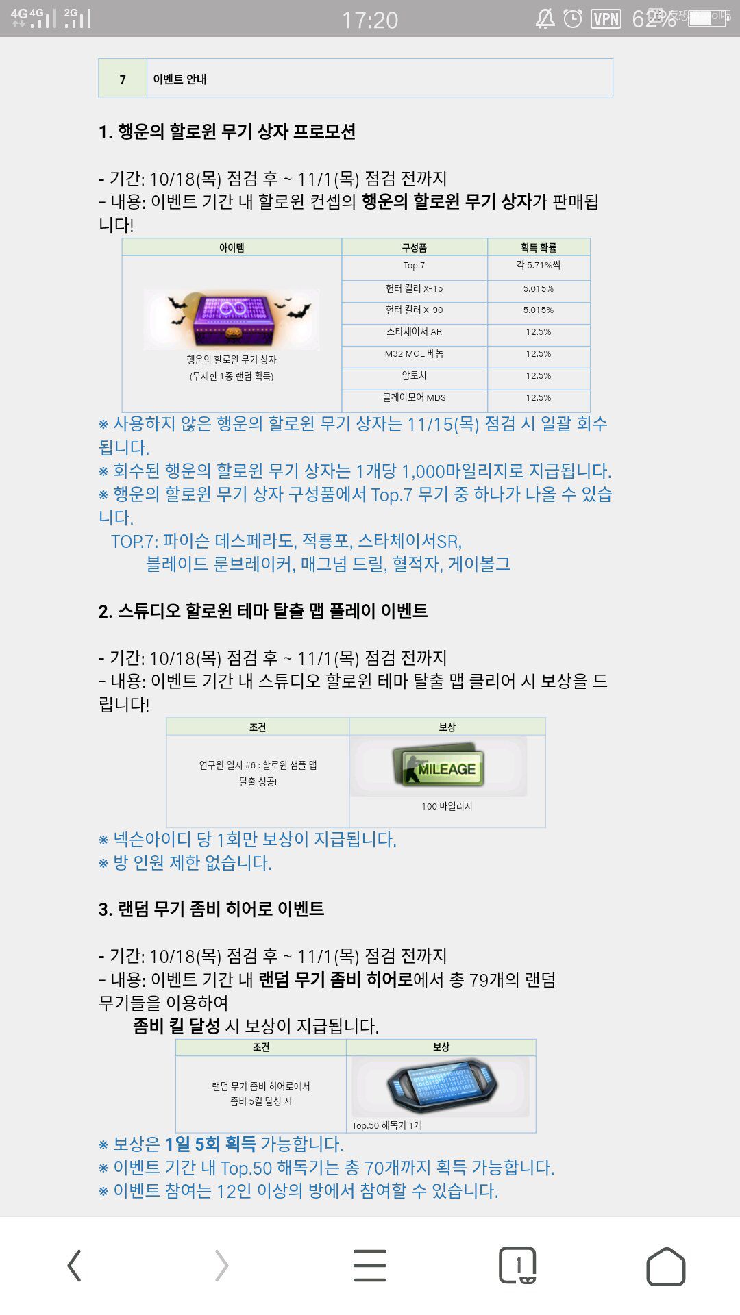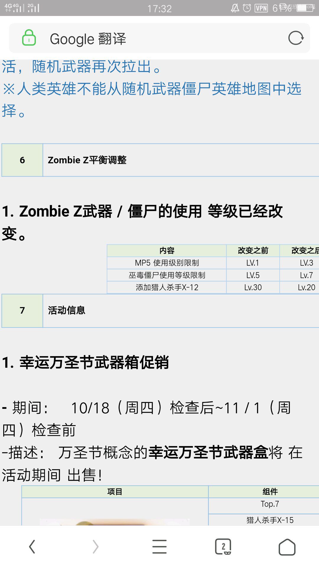 7,签到给三个新配件各一个(沦为3级)和万圣节武器箱。