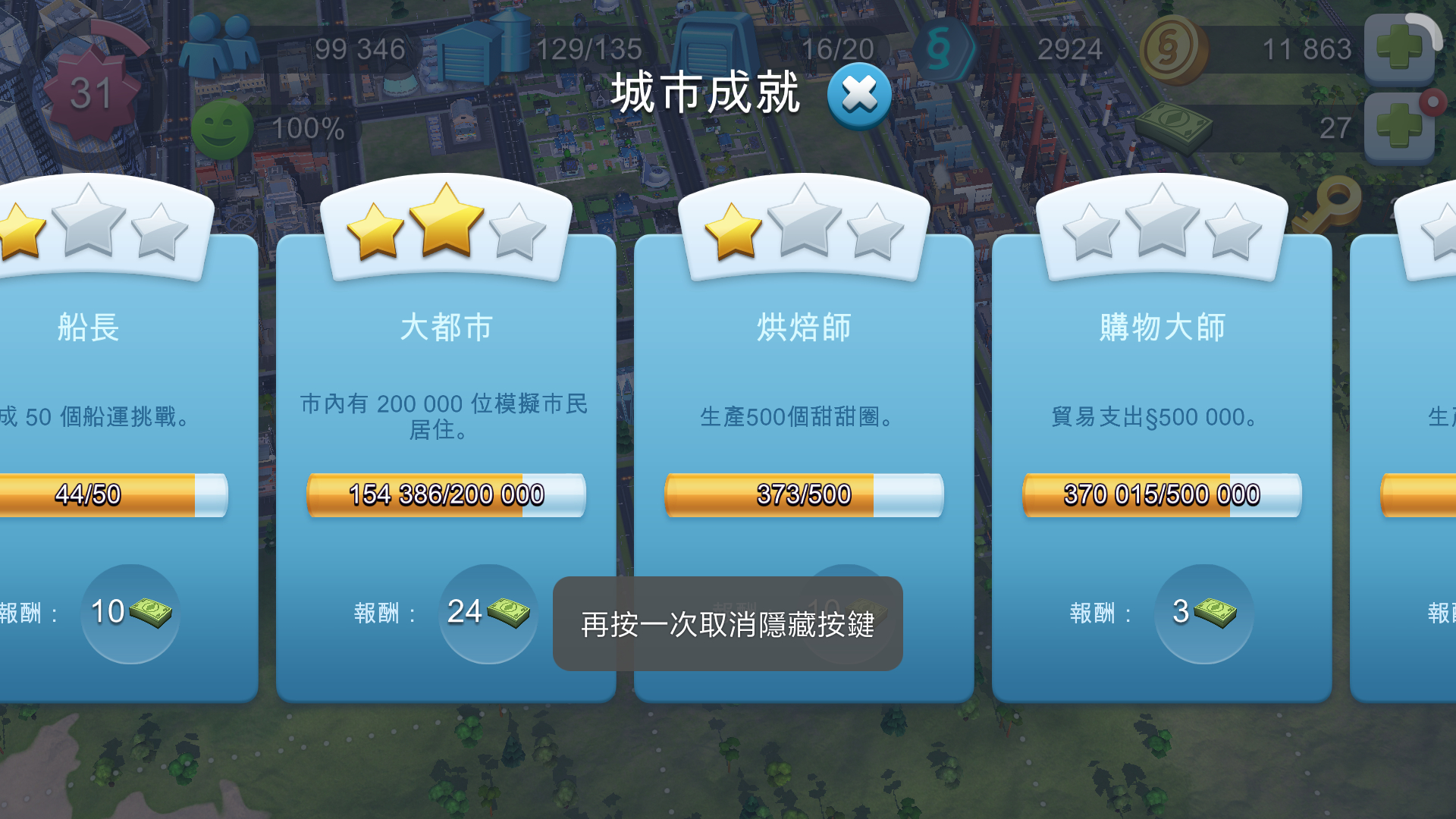 希望游戏可以一直陪伴着市长大大走下去哦!