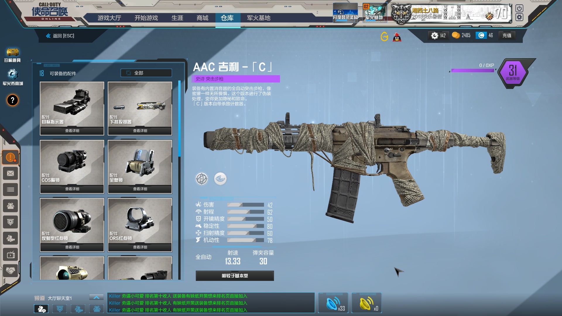 属性我选原版 射程对喷子很友好 扫射也变相加高了喷子的致死率 如果主aac形态星标的加子弹也很不错