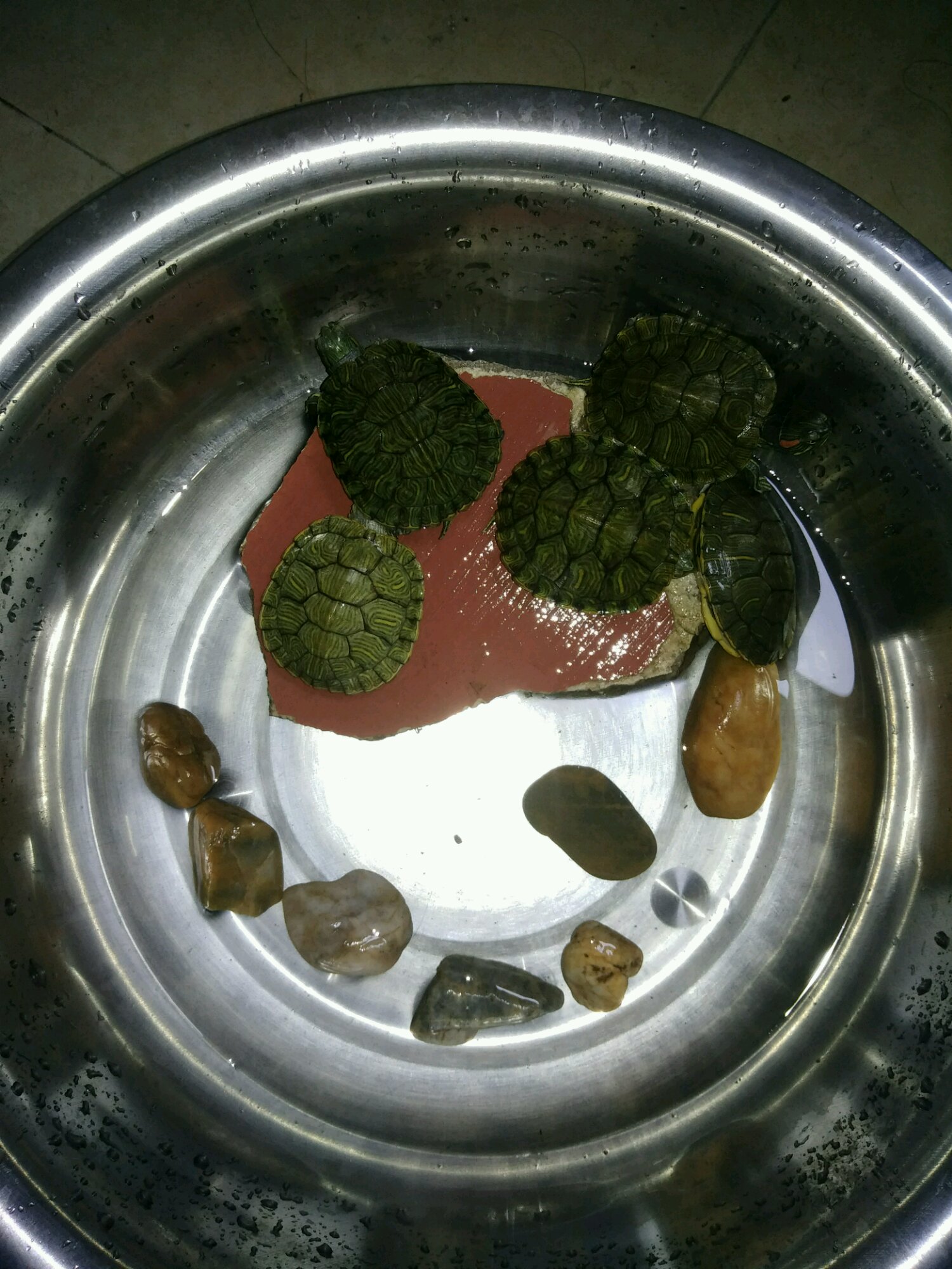 萌新刚入坑,不知道怎么养龟龟,上礼拜买的龟龟,现在有快十天了,龟龟平时就喂它们吃龟粮和生肉,但他们没有吃迹象~我一天换一次食和换一次水,到现在也没有吃,很担心,而且也不张嘴,不过白天精神很足,早上7点多就爬来爬去的,我就把他们拿到桌子上爬,抓手里一直动,翻身了也很快翻过来,中午还给他们晒太阳,下午拿去遛草地,他们自己爬,会自己扒洞躲起来,