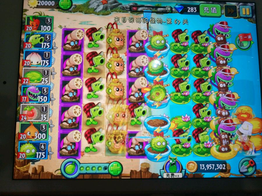 今天尝试了一下板栗,发现钓鱼僵尸顶多钓走大嘴花,板栗钓不动,章鱼则先缠板栗,后缠大嘴花。总算不用刷这两个僵尸了。