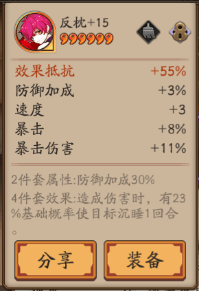 那个反枕真没什么用,要是给陆生也只能当两件套。两件套防御加成没用啊,还不如弄个两件套抵抗的继续往上堆抵抗