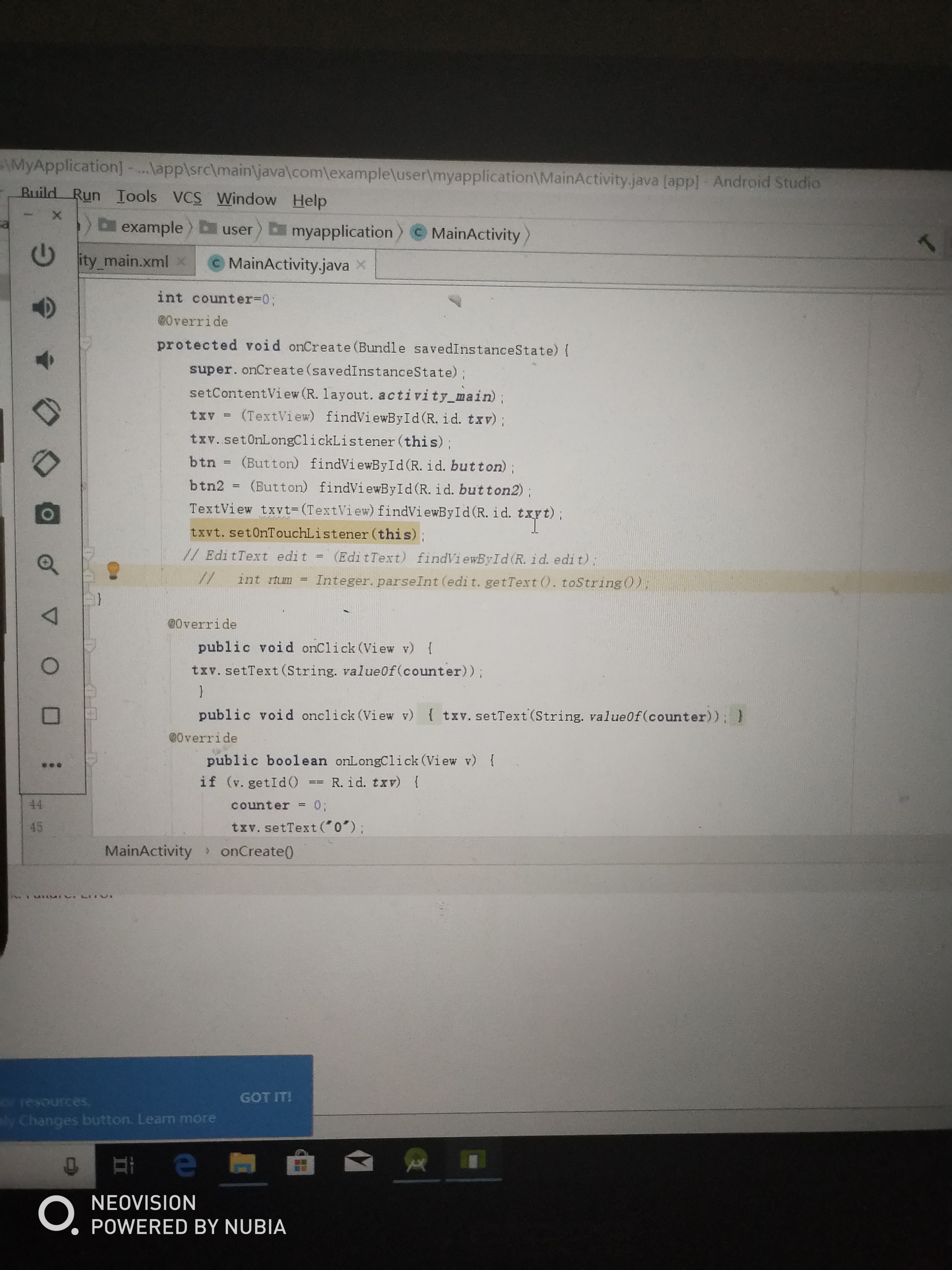 取得edittext的内容转换成int型并加上counter那边老是运行不了什么原因