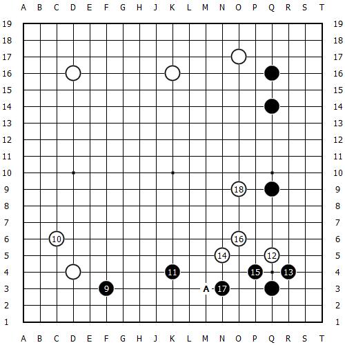 这个定式现在没人走了,原因是黑先占角,到头来目数还不如白棋。