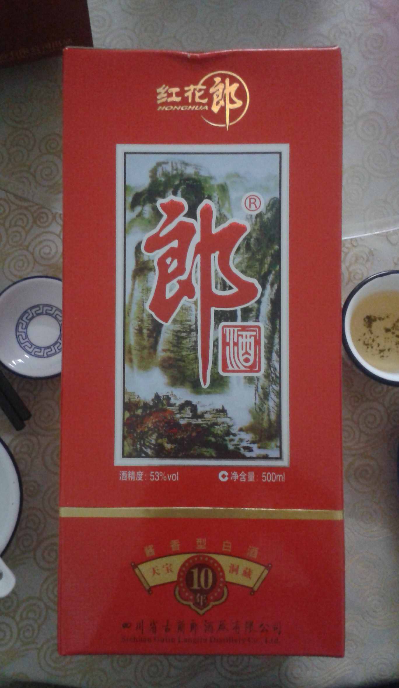 10的山水郎,八年的陈化,汤色金黄,酱味浓郁,陈味略重,入口醇厚、顺溜(这词鸡奕说的),尾味微酸,回味稍短,越喝甘甜。酱香典范,名不虚传。(实际汤色比照片黄不少)