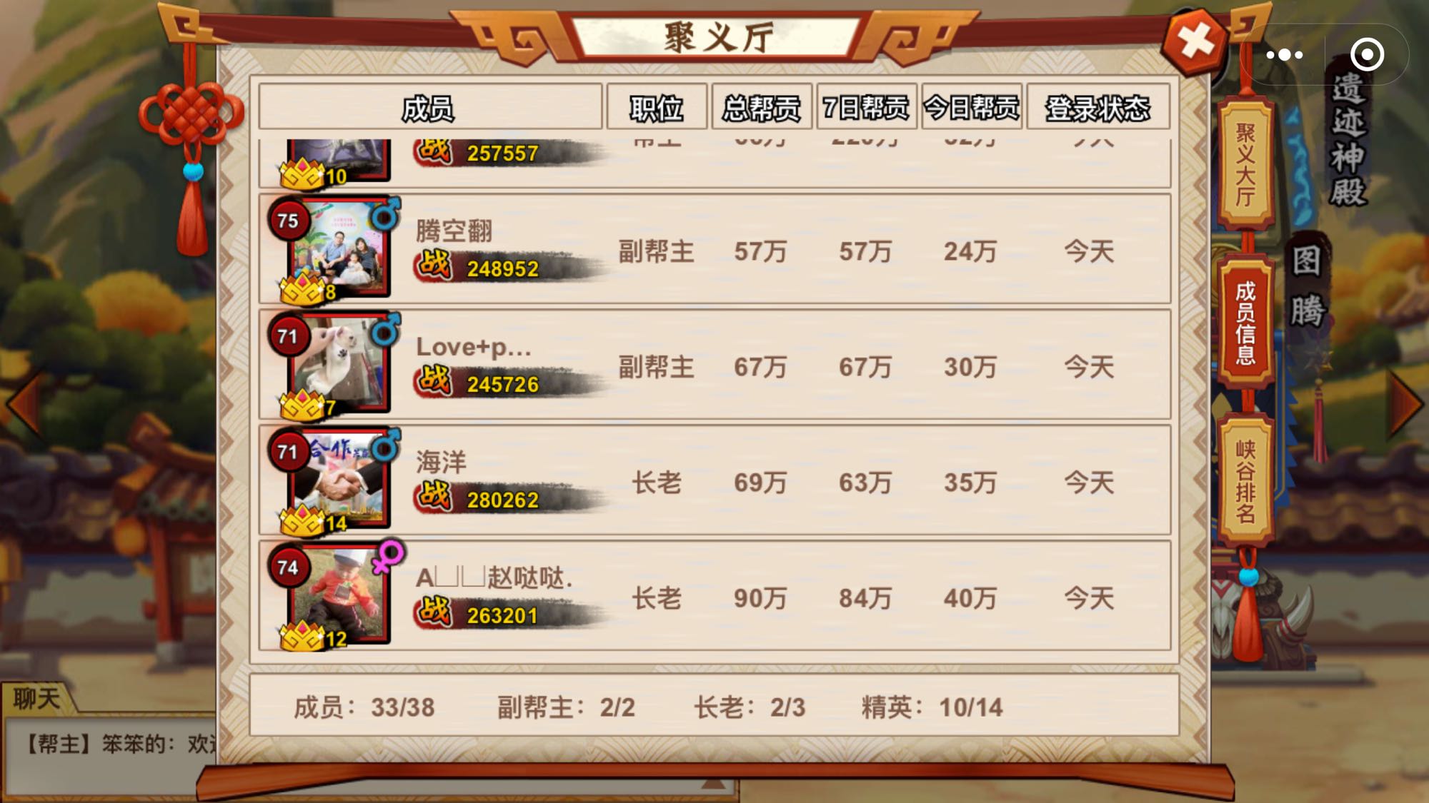 小程序1区21.7w 有没有通关光明顶得帮派招人,来个帮