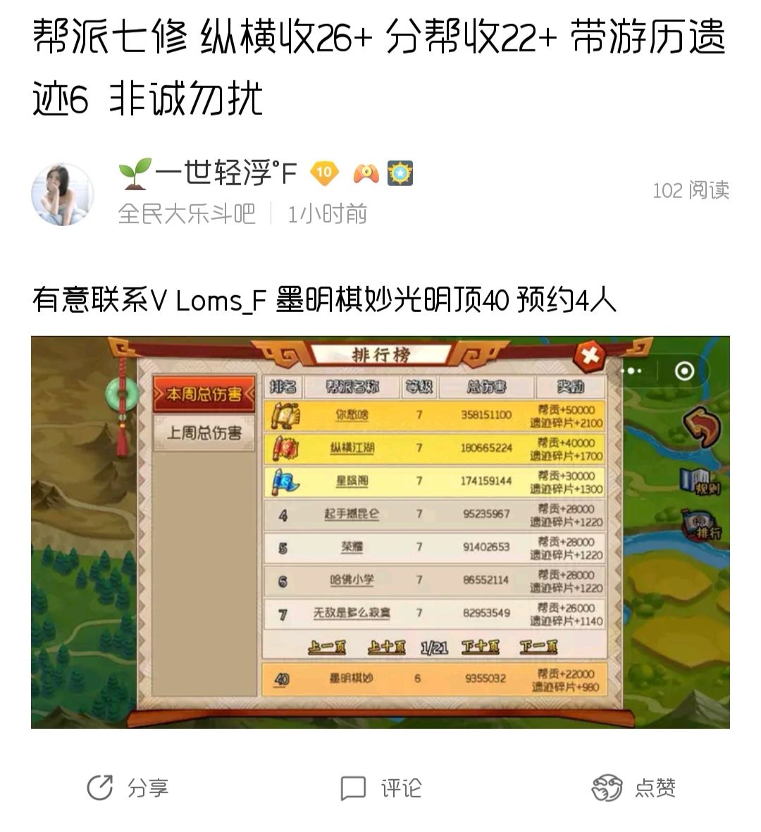 欢迎活跃玩家来七世,共同发展还有2个位置,前30帮派【图片】