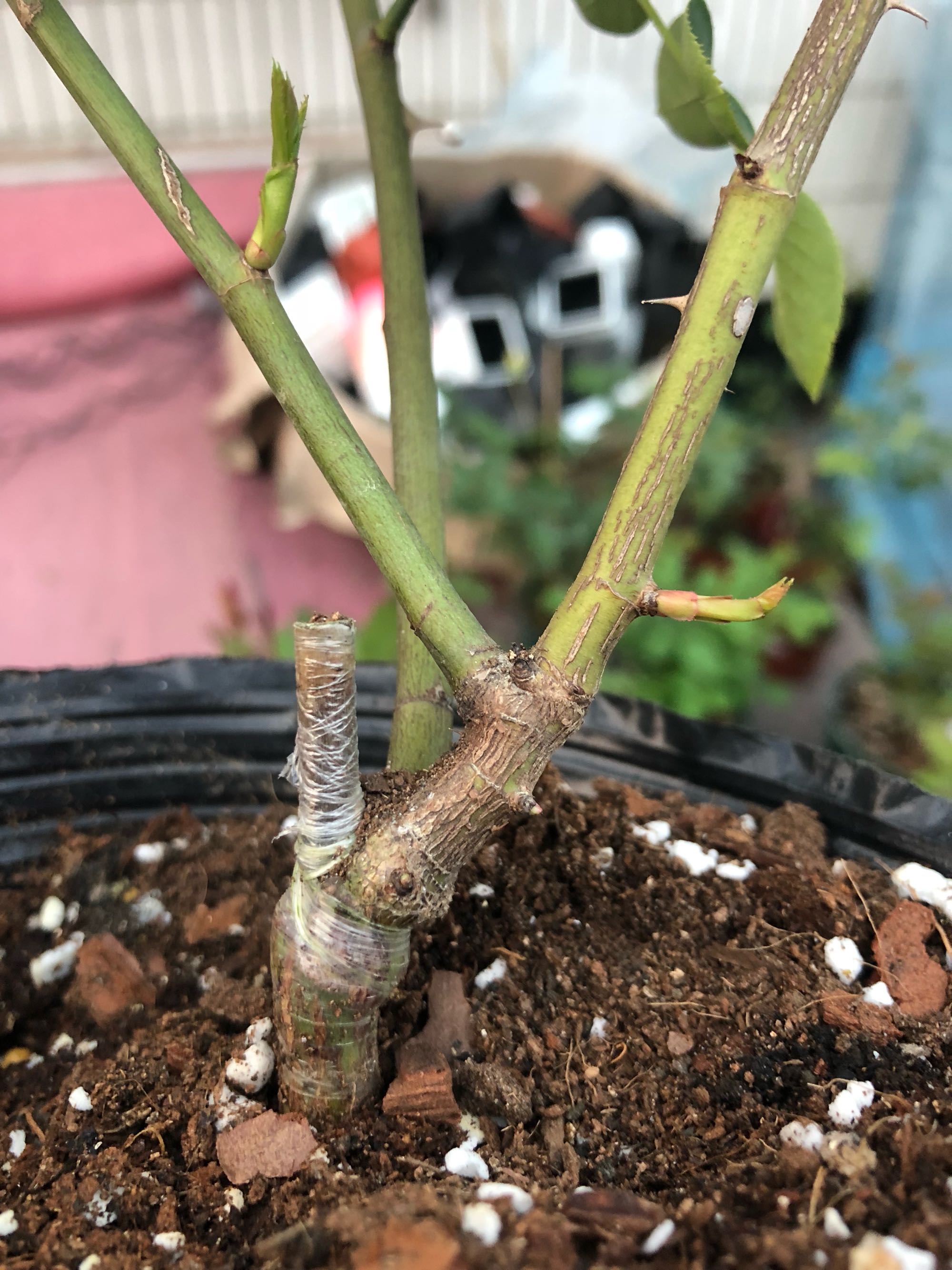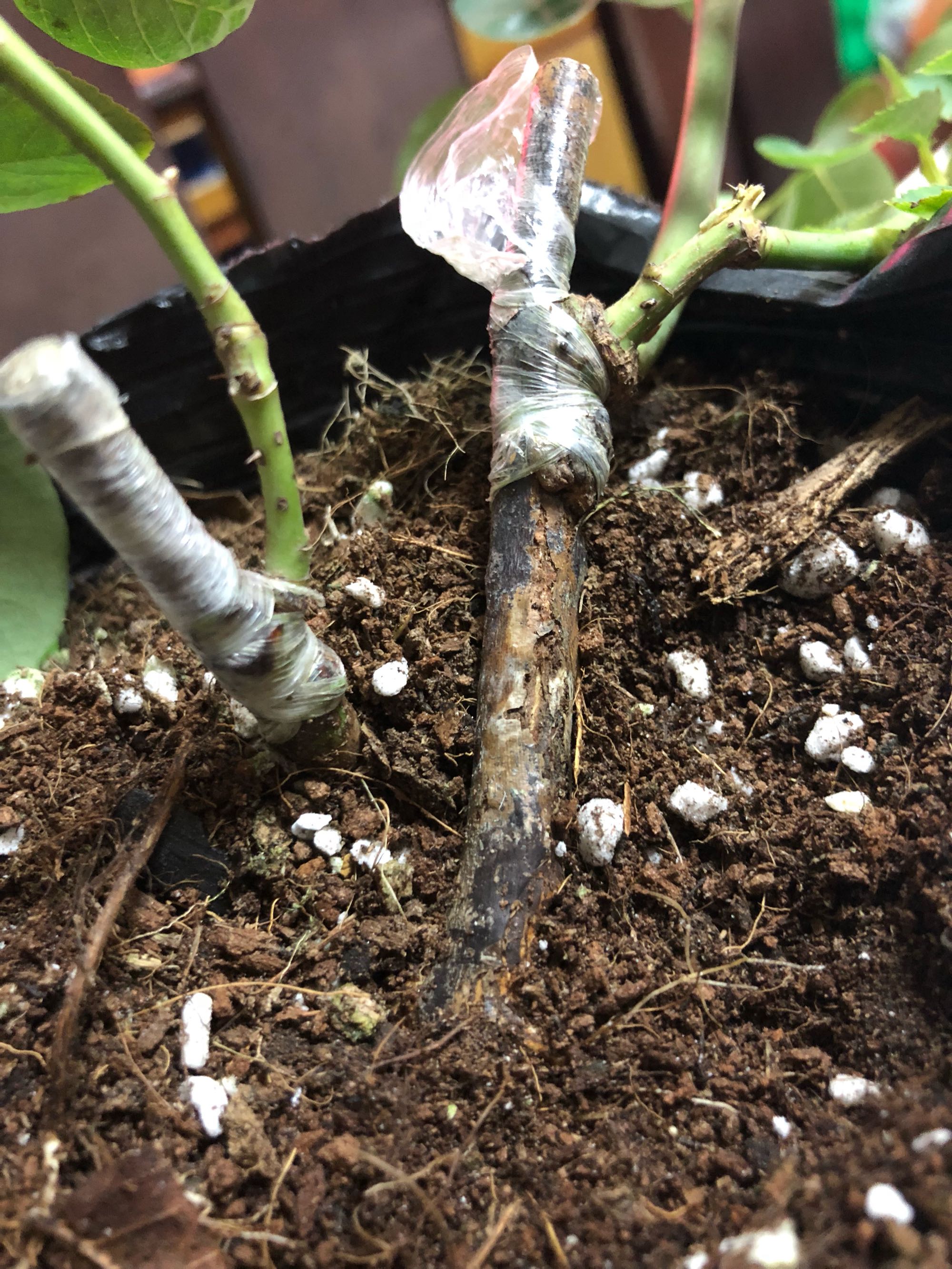 《花团家月季》买的嫁接伊芙中苗砧木大部分都发霉了边上补了棵小