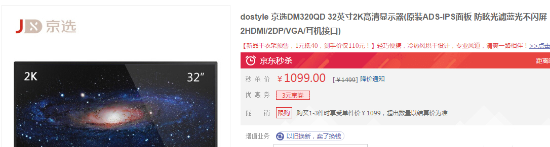 这个算不算真香啊?32寸狗东自营2k显示器1100