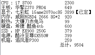研究了两天~交个毕业配置单,老哥们看一看有什么需要换的~?
