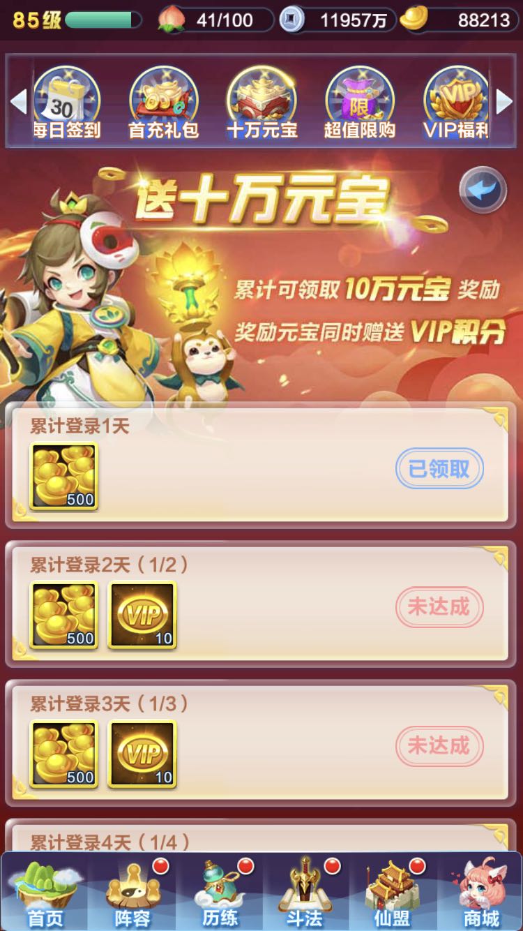 终于领了第一天元宝,好激动,有没有比我还能忍的