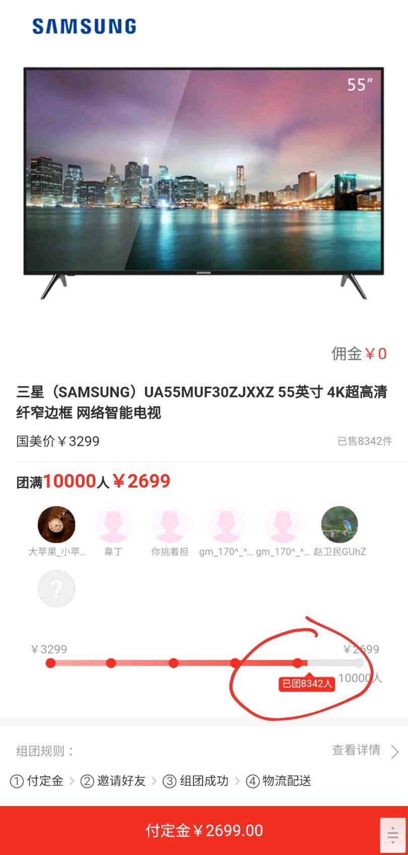 三星电视和国美电器现在搞了一场线上万人团购的活动,