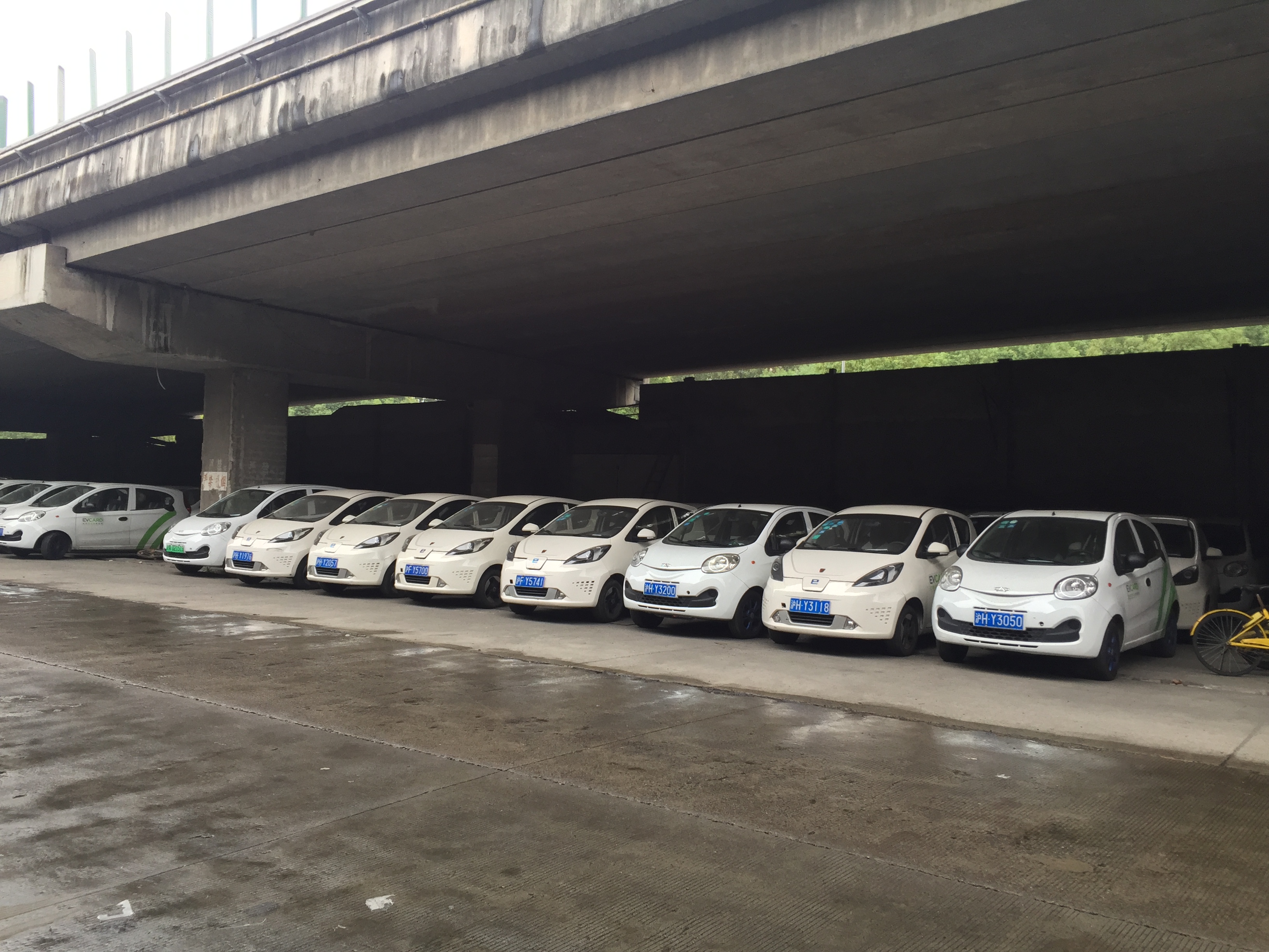 这是我无意中发现的一个网点,网点那里在手机上显示只有三辆车,然后我就坐公交过去找,结果在高架下面的一个停车场里面发现了应该一百辆车左右,照片拍的不是很清晰,车子前后三排,左边右边都有,这个是顺手拍的右边,场面很壮观,我查看了一下,车子并没有什么明显损伤,其他的就不太清楚了,可能还有很多这种网点,就是不知道老板把车藏起来是想干嘛……