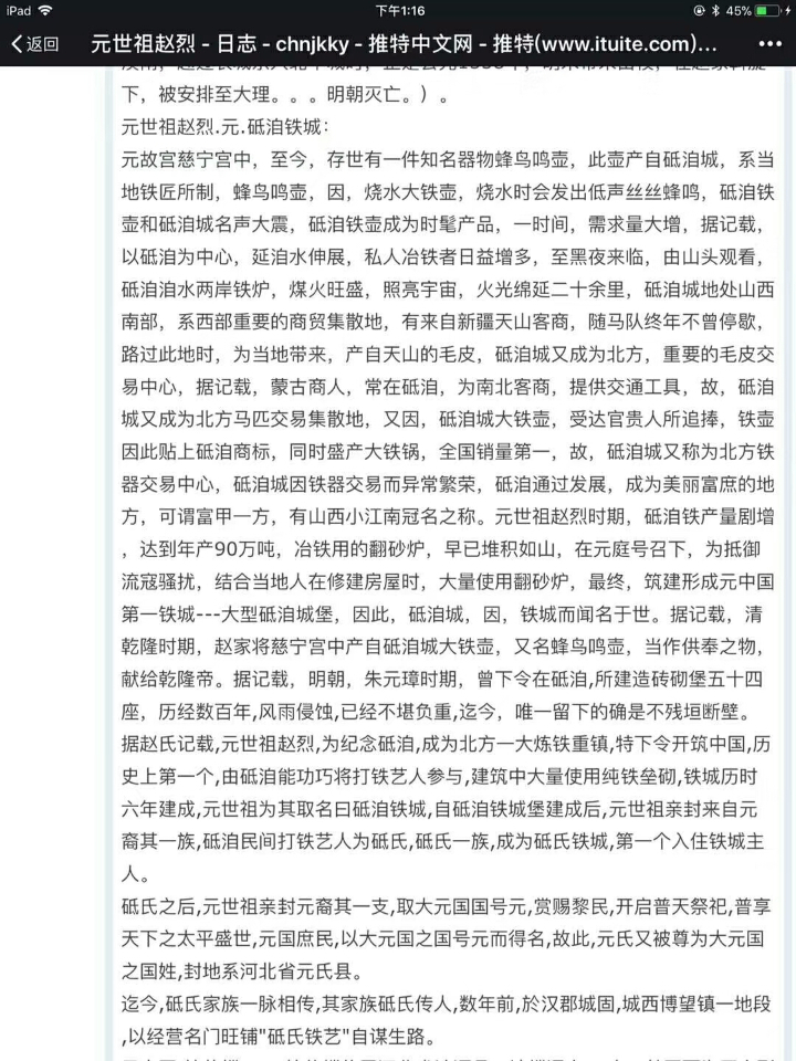 砥洎城是明未在原有的基础上补修起来的,那坩埚是宋代铸铁钱用过的,最早的北铁山(铁渣)在城西北处。元代纯铁垒彻的城墙在明初就被拆用了。新政黑旧政,鞑子的印记一点一点被抹去,唯有铁鞑炉还存在。